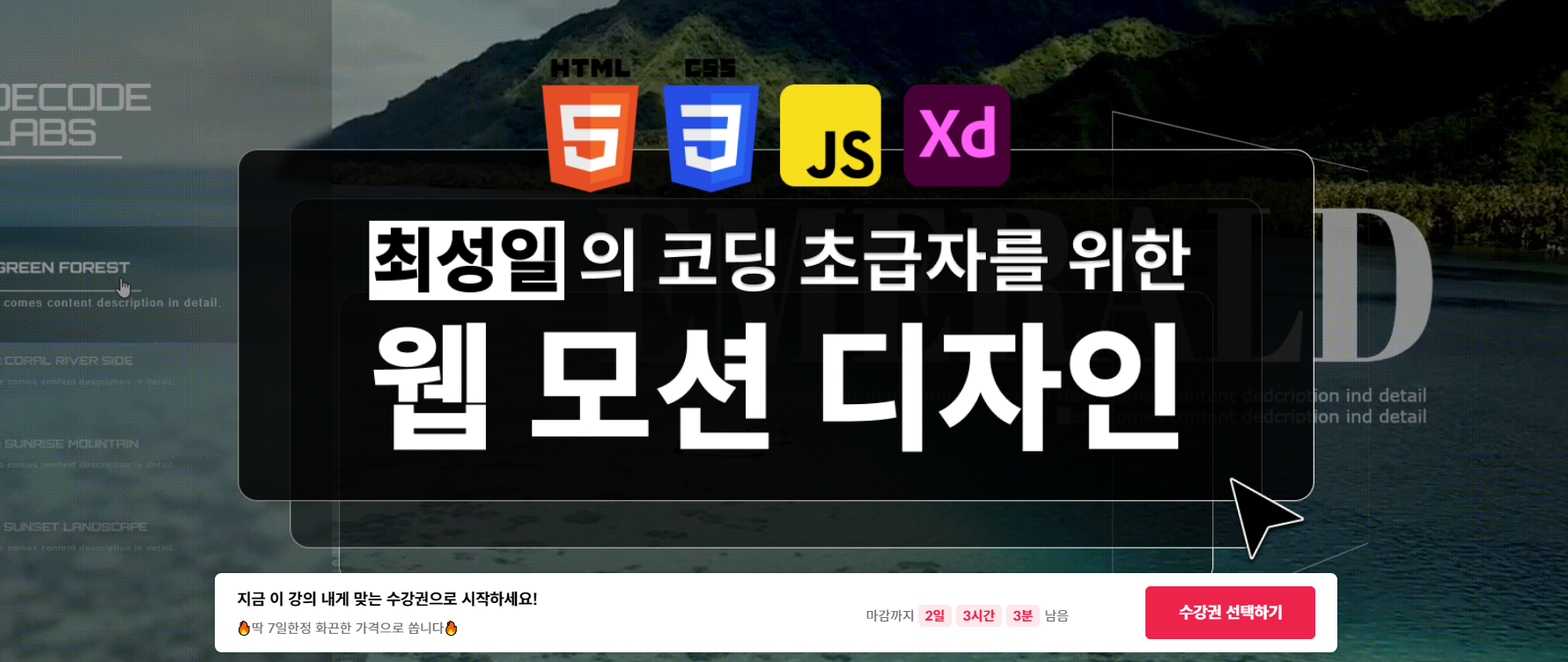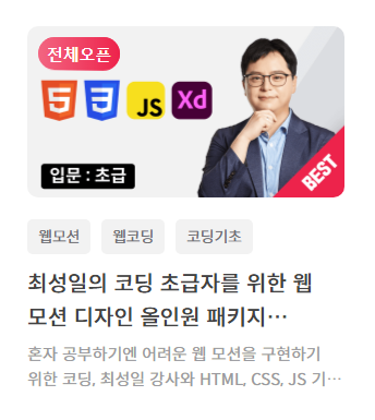 일단 제가 듣고 있는것은 최성일의 코딩초급자를 위한 웹 모션디자인 올인원패키지에용