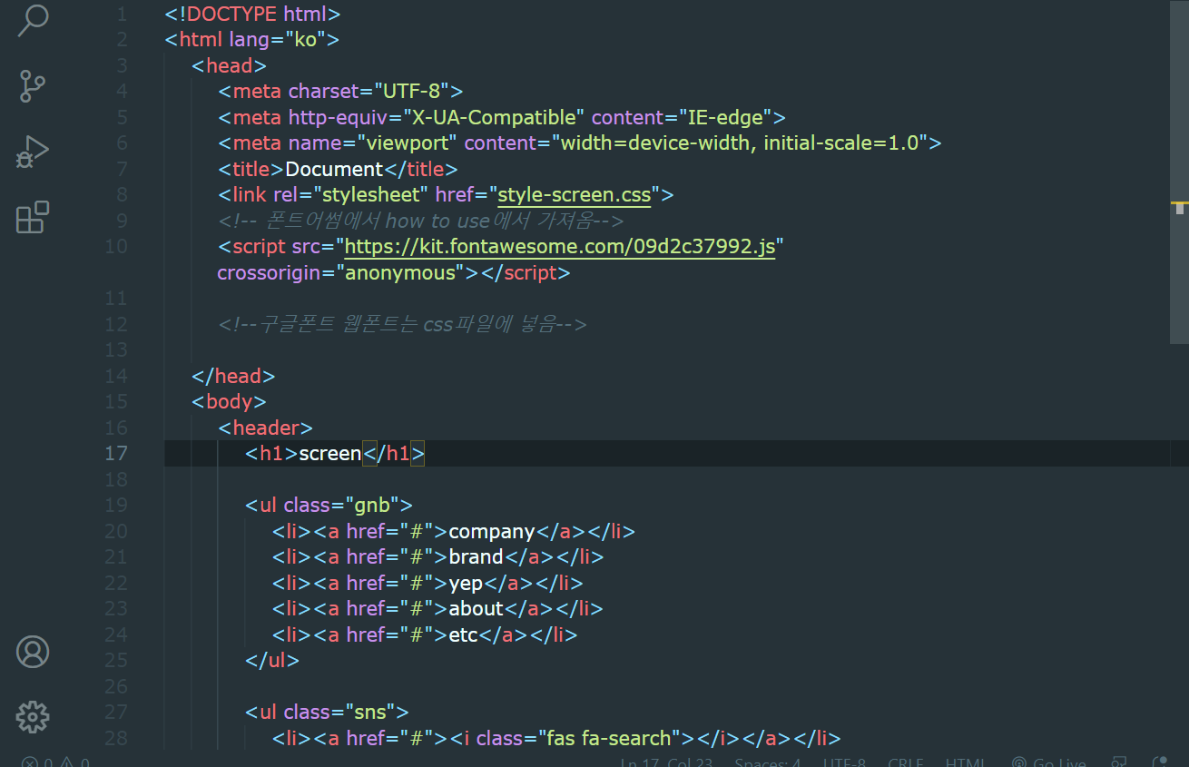 그래서 이렇게 비주얼스튜디오코드로 코딩해보며 강의보고 있어요 요새 :)