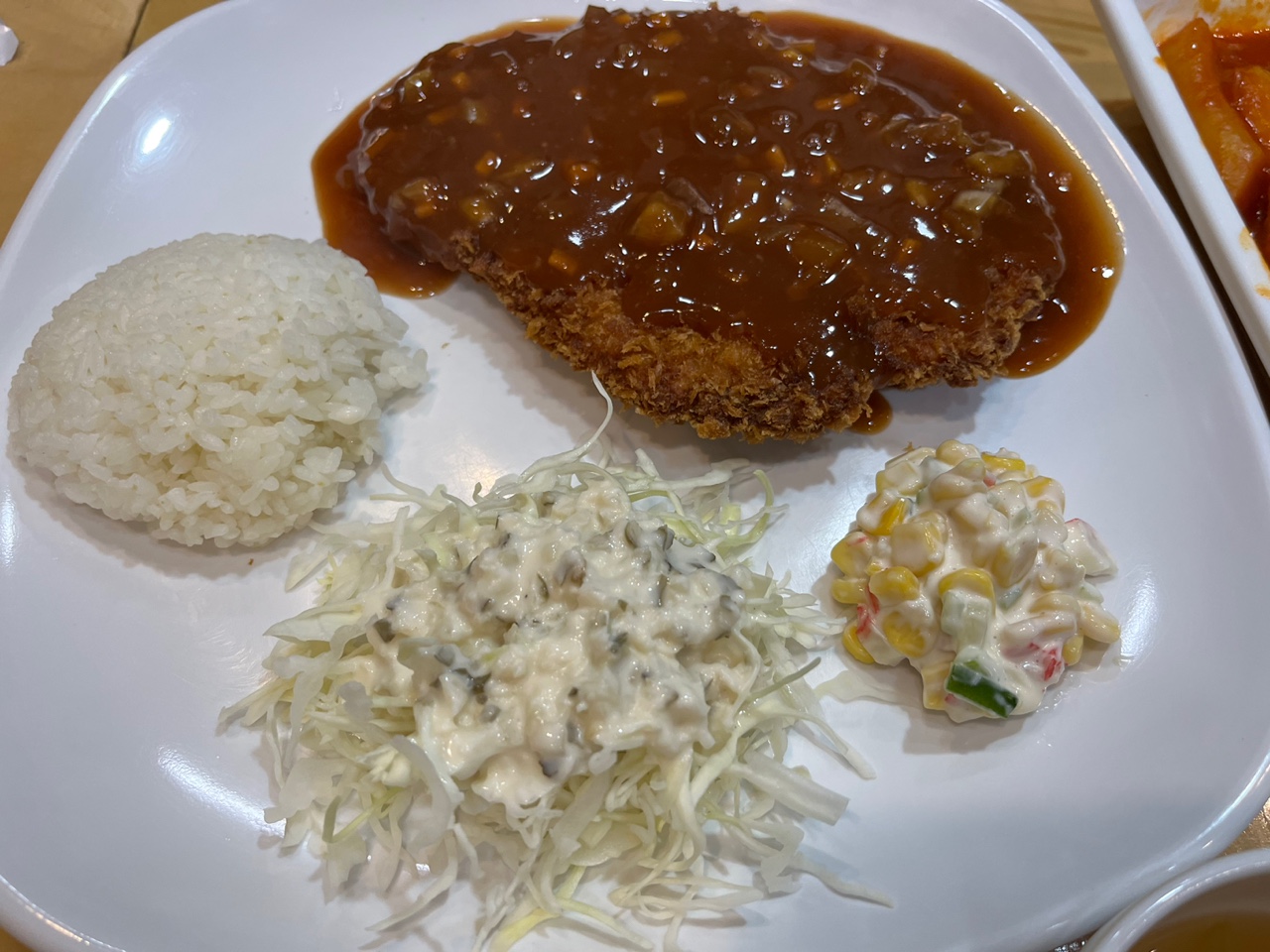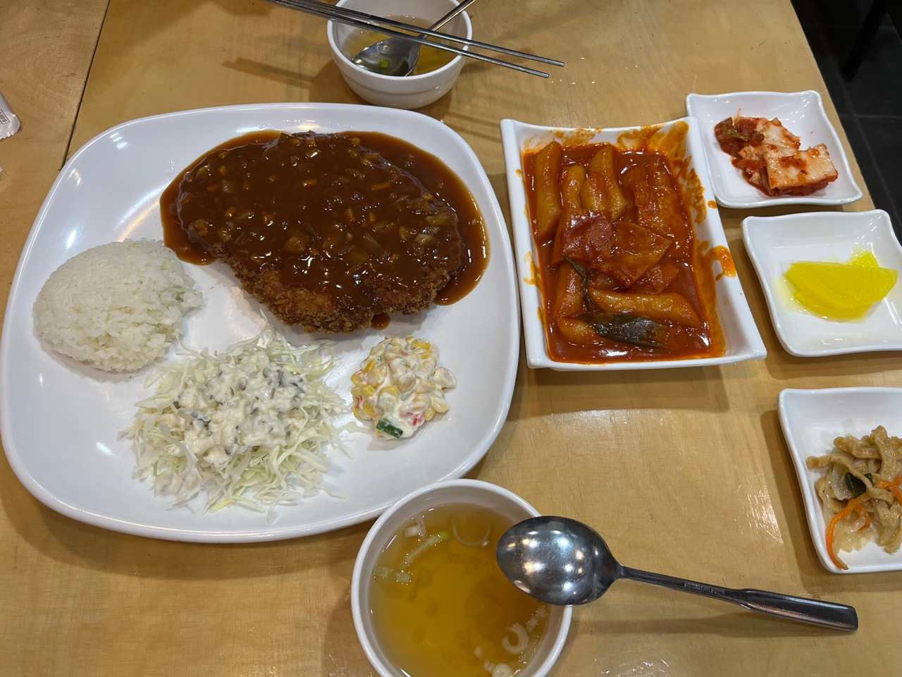 돈까스랑 떡볶이 시켰는데 영심이네 떡볶이는 진짜 맛있는것같아요 ㅎㅎ 돈까스는 평범한 급식돈까스 맛인데 배고파서그런지 너무너무 잘먹었어요 :) 샐러드도 안느끼하게 피클다진것넣어져있었는데 맛있더라구요!!