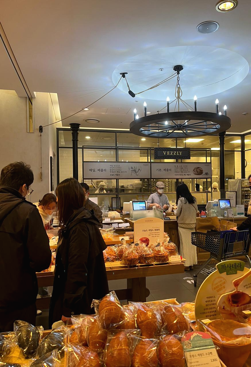 그리고 여기, 현대백화점 지하에 베즐리라는 베이커리집인데, 여기 맛있어보이는게 진짜 많았어요.