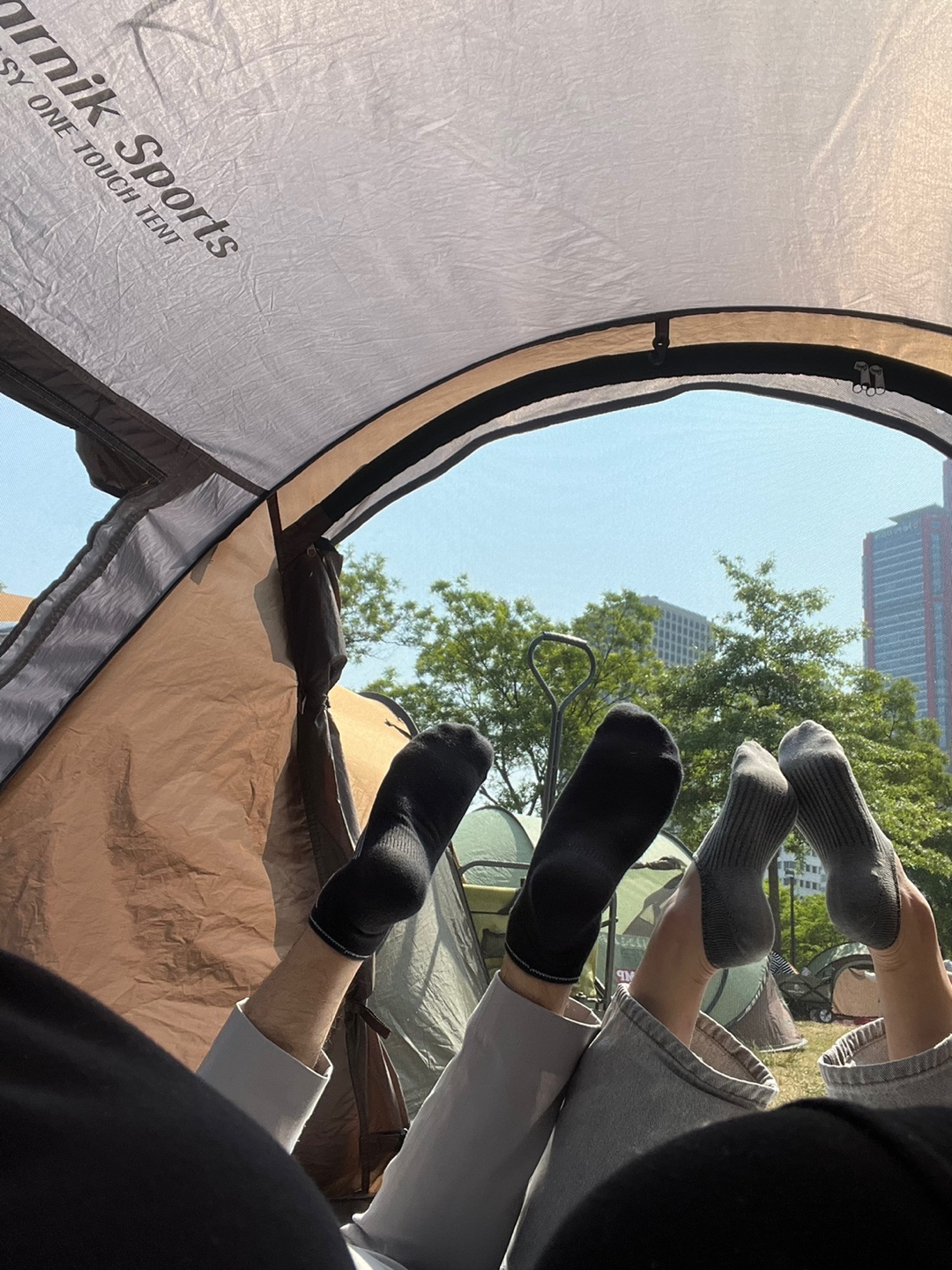 텐트는 필 수 있는 곳이 정해져있어서 꼭 확인하고 펴야해요. 안그럼 이동하라고 말씀하심 ㅠㅠ