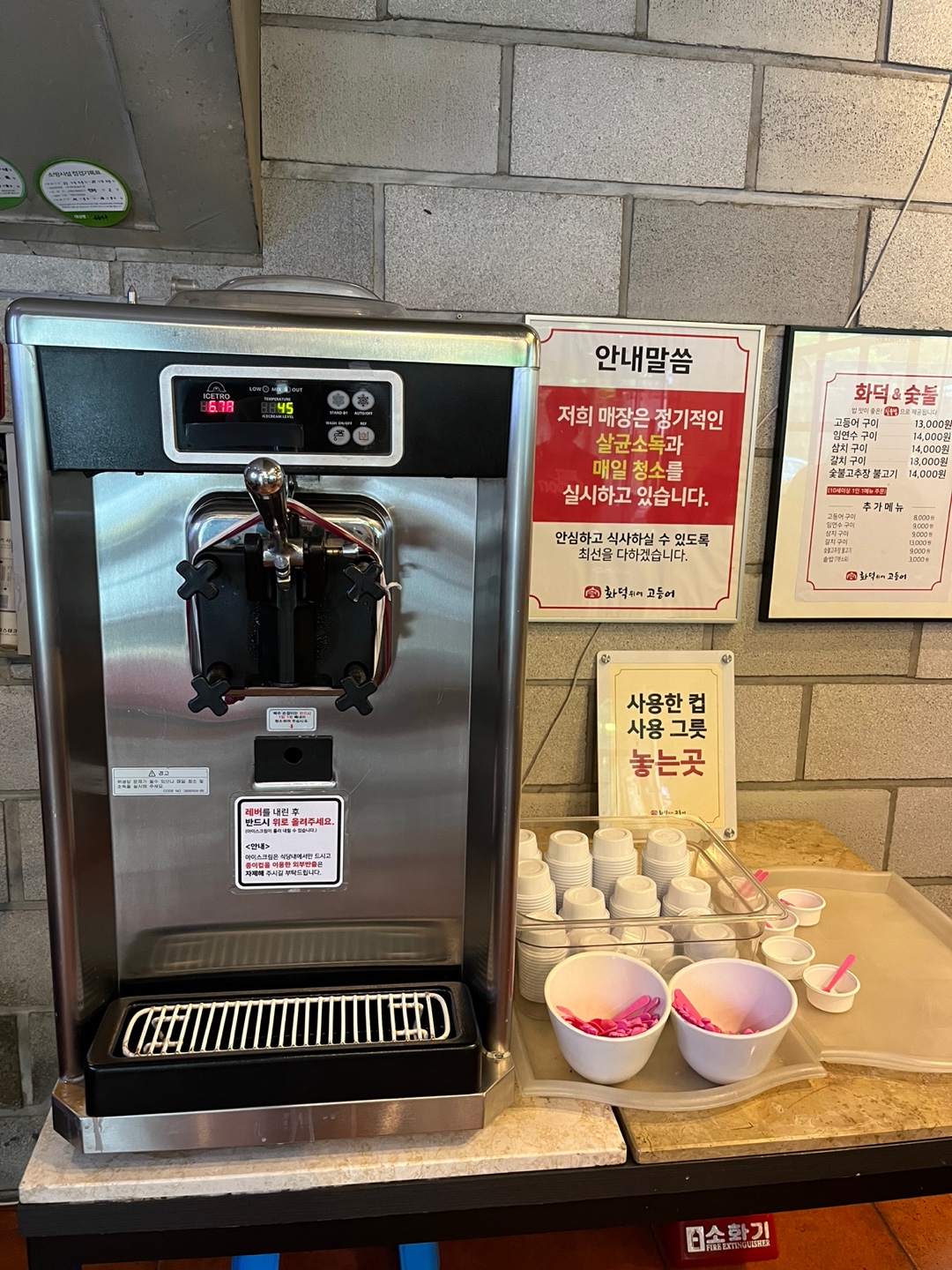 자리에 앉아서 주위둘러보니 깔끔?한정도는 평범했고 모든 직원들이 인원수도 많으신데 처음에 주문하면 밥을 돌솥밥을 주시느라 가는 통로에 돌솥이 쭈루룩 있더라구요. 아이들이 오다니기엔 불편할거같았어요. (그쪽에 셀프바가있어서 왔다갔다했는데 저도좁아서 다니기가 불편했던 ㅠㅠ)