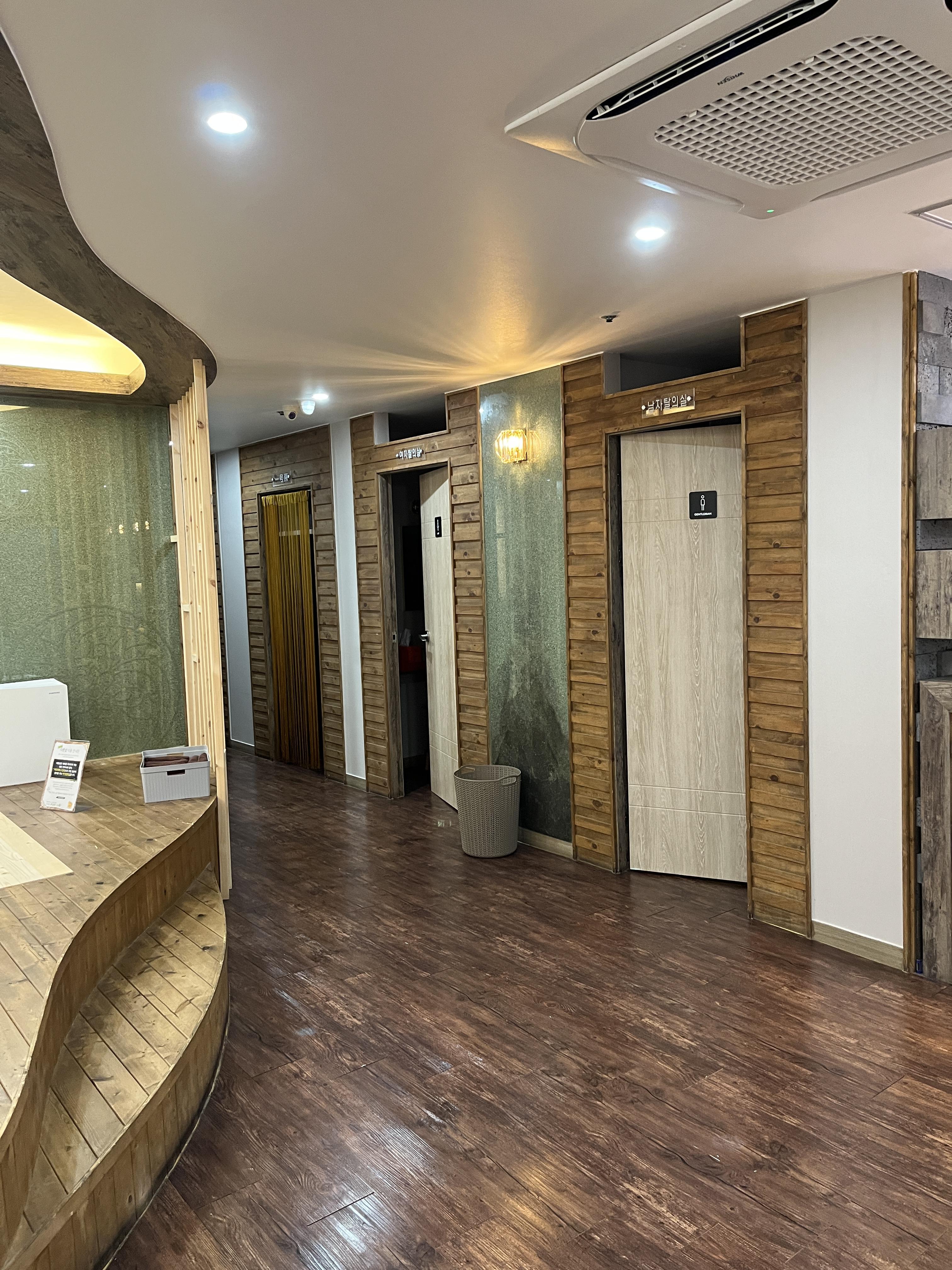 다 받으면 발을 한번 닦아주시고, 안쪽으로 들어가서 마사지를 받습니다!
