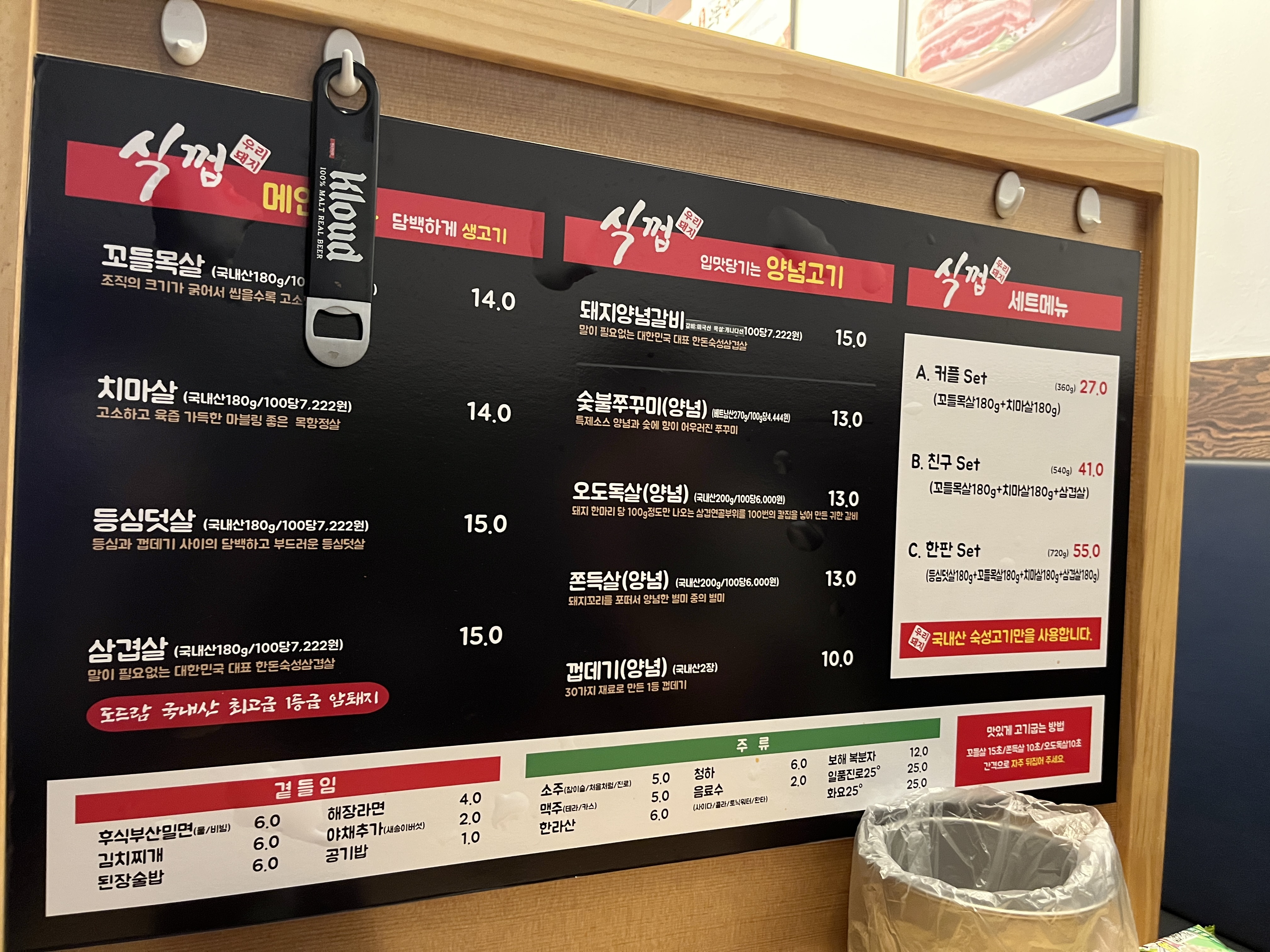 부산비빔밀면이랑 치마살(목살보단 치마살이 맛있었어요) 로 추천드려요 ㅎㅎ