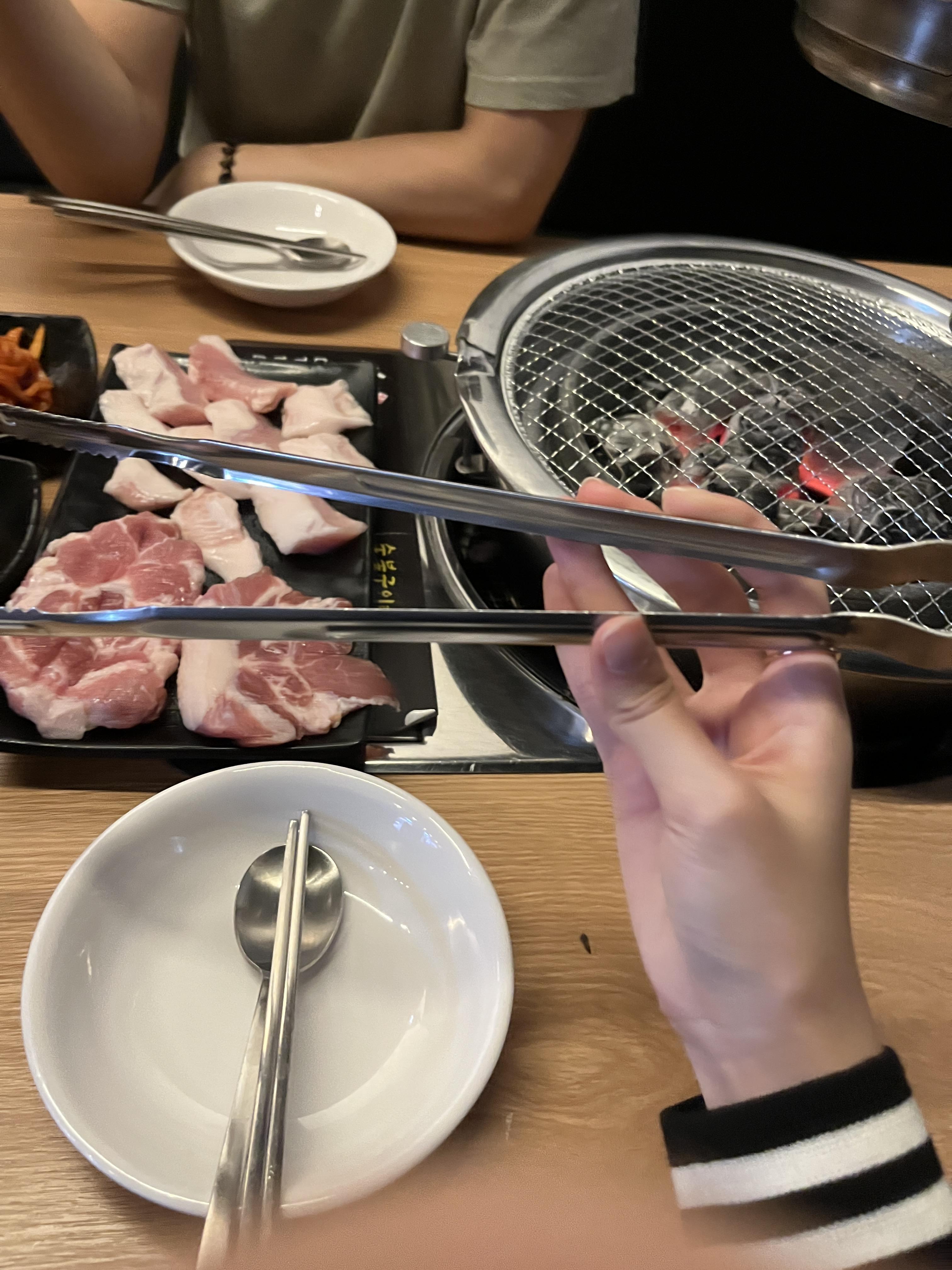밑반찬들도 다 맛있고 김치도 신김치인데 맛나요 ㅎㅎ 여기고깃집 집게가 길어서 편하더라구요!