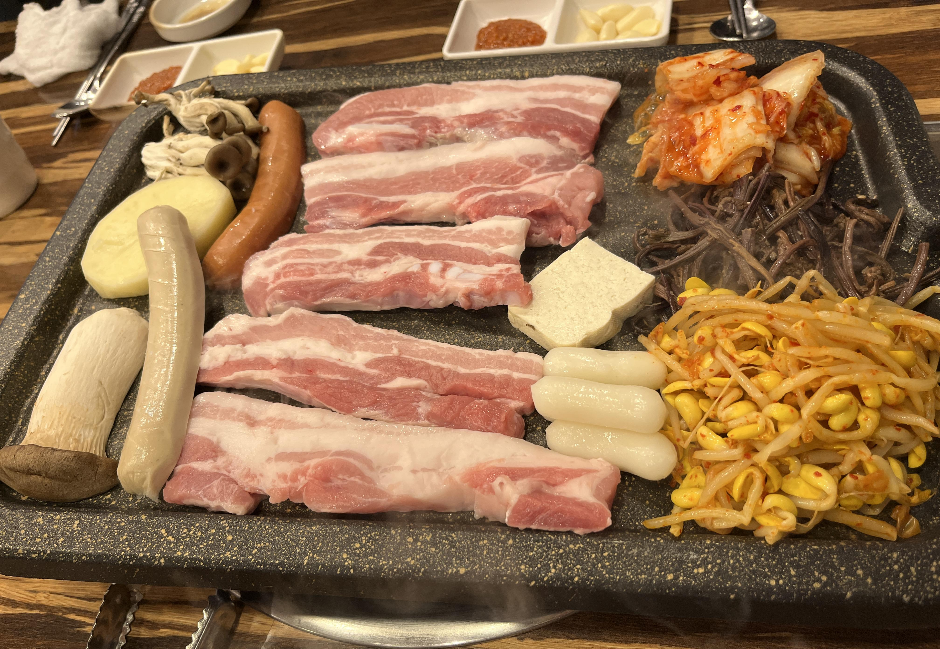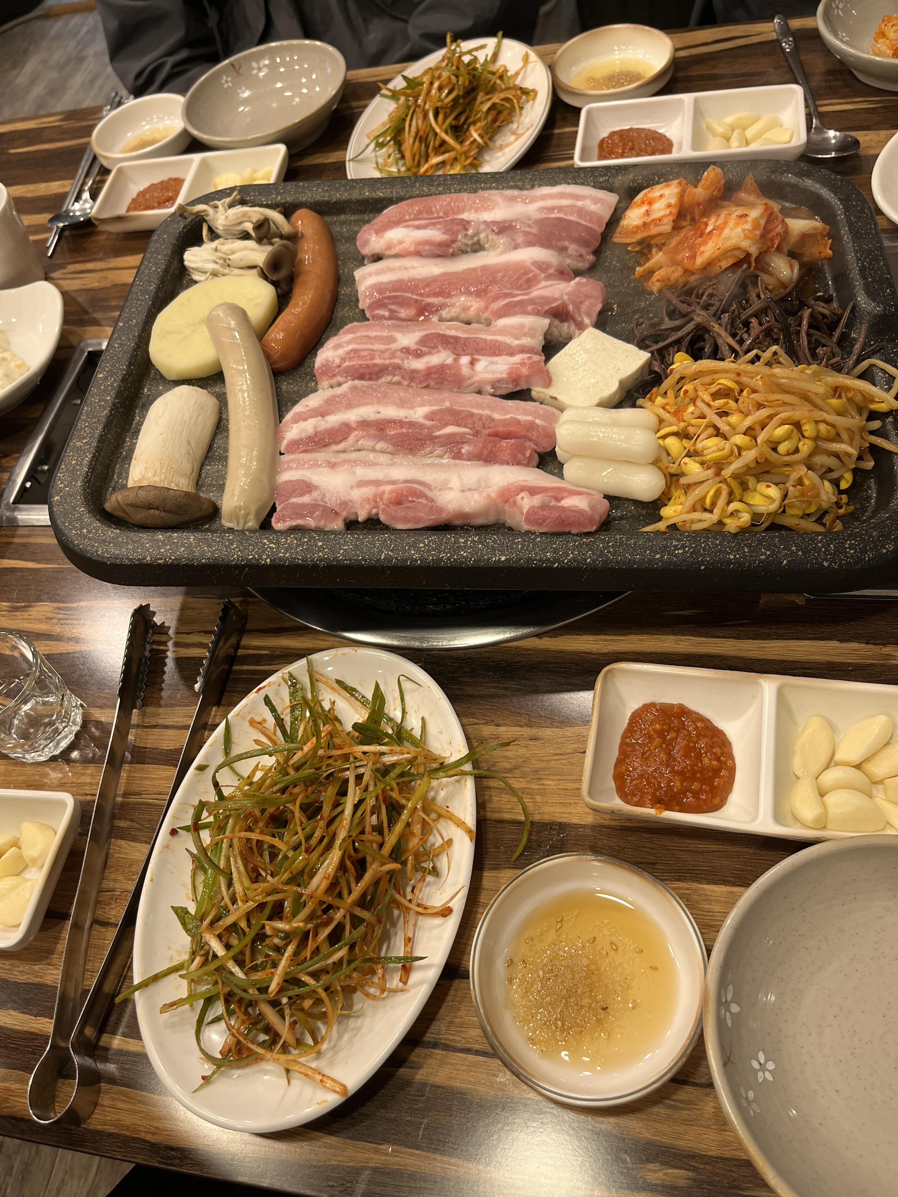 삼겹살로 시켜도 소세지랑 버섯 감자 버섯 떡 콩나물 고사리는 기본으로 줘서 아주좋아요!