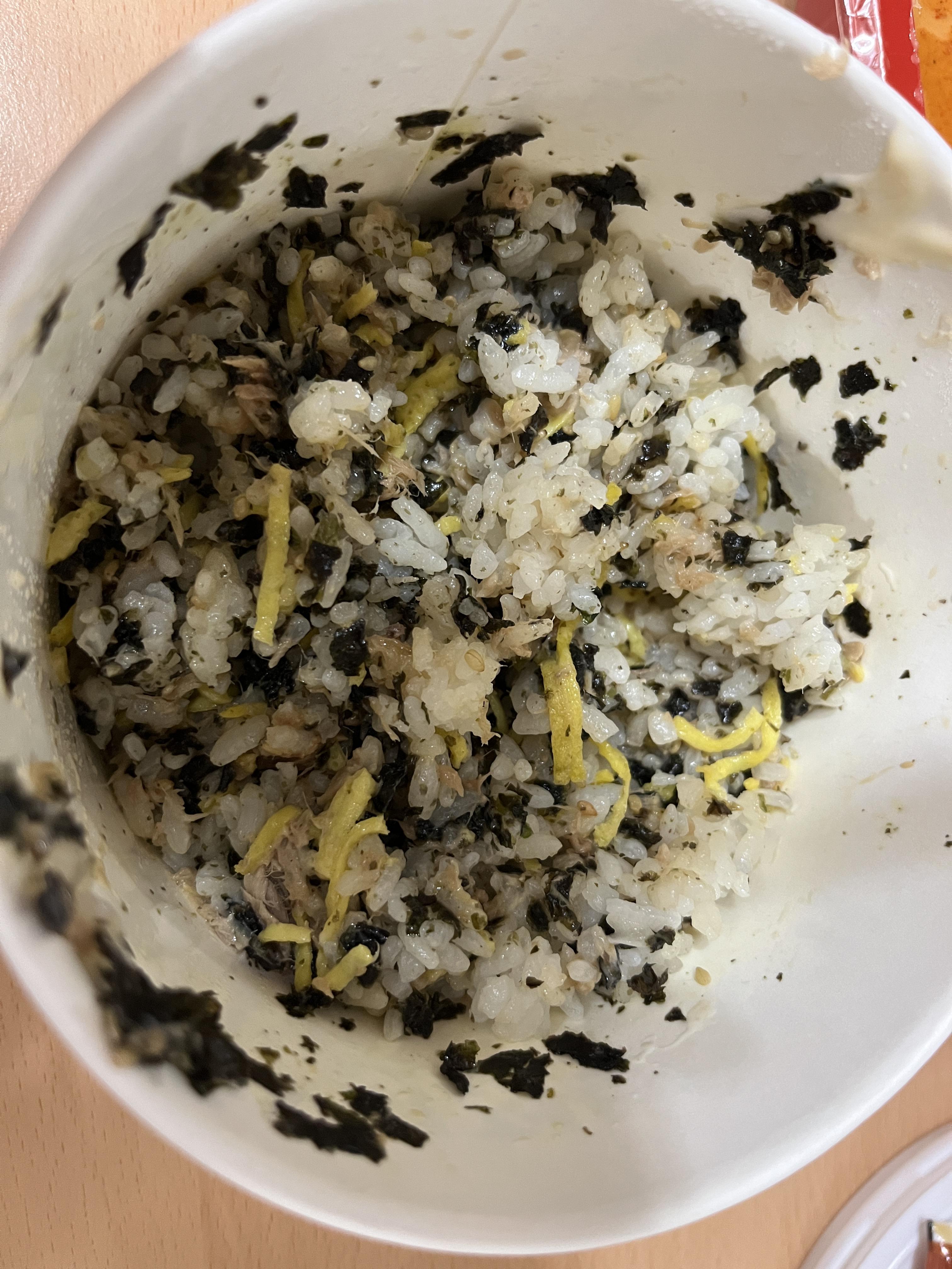 이렇게 컵밥에 체다마요소스 + 간장소스 더해서 비벼주면 완성!