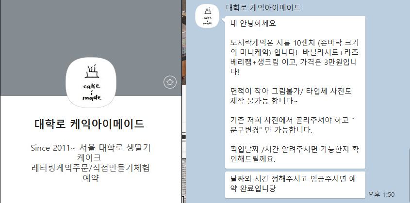 친절하게 상담해주시니까 문의드려봐도 좋을것같아요! 레터링케이크 주문하는 장소로 추천드려요.