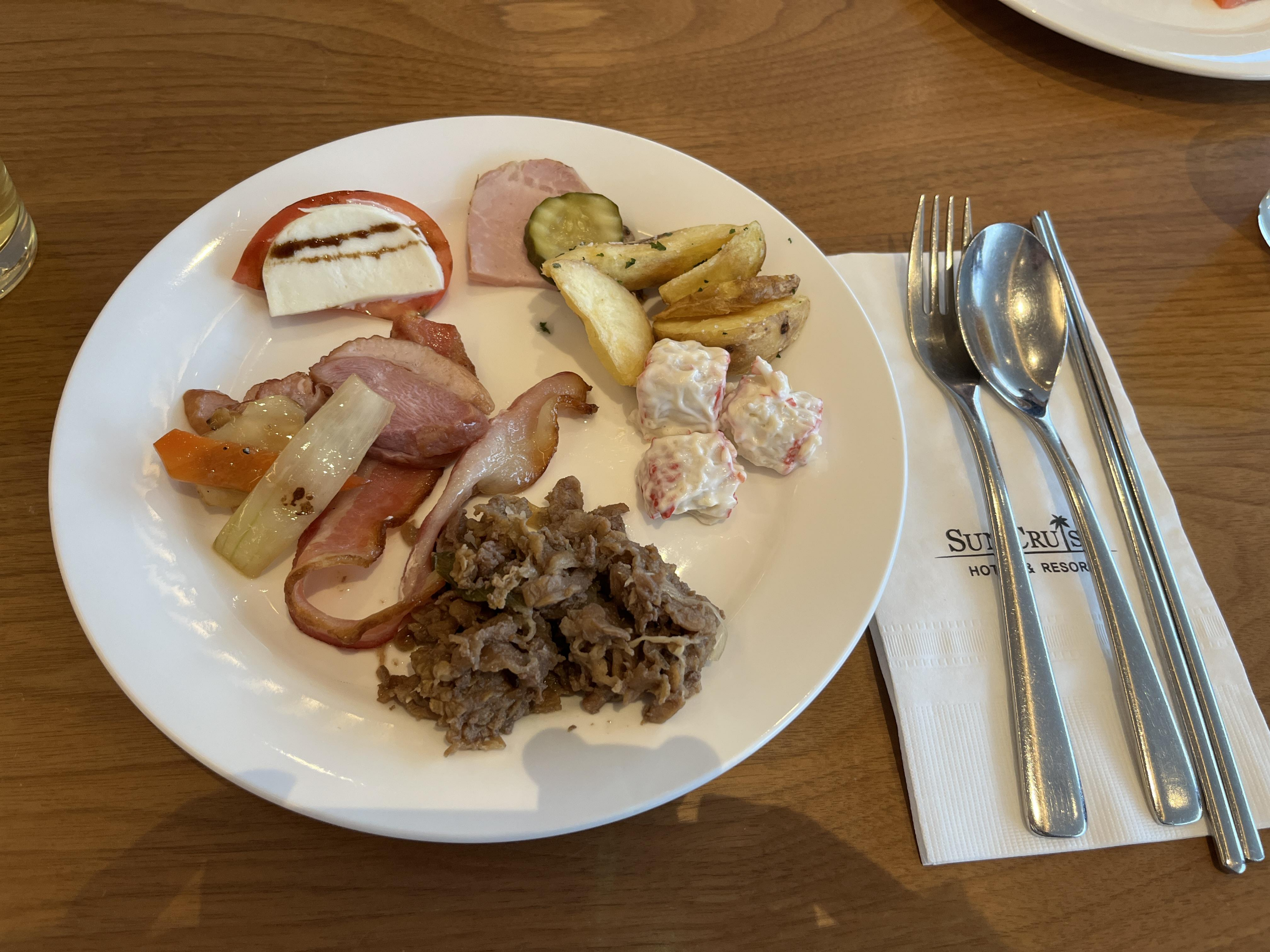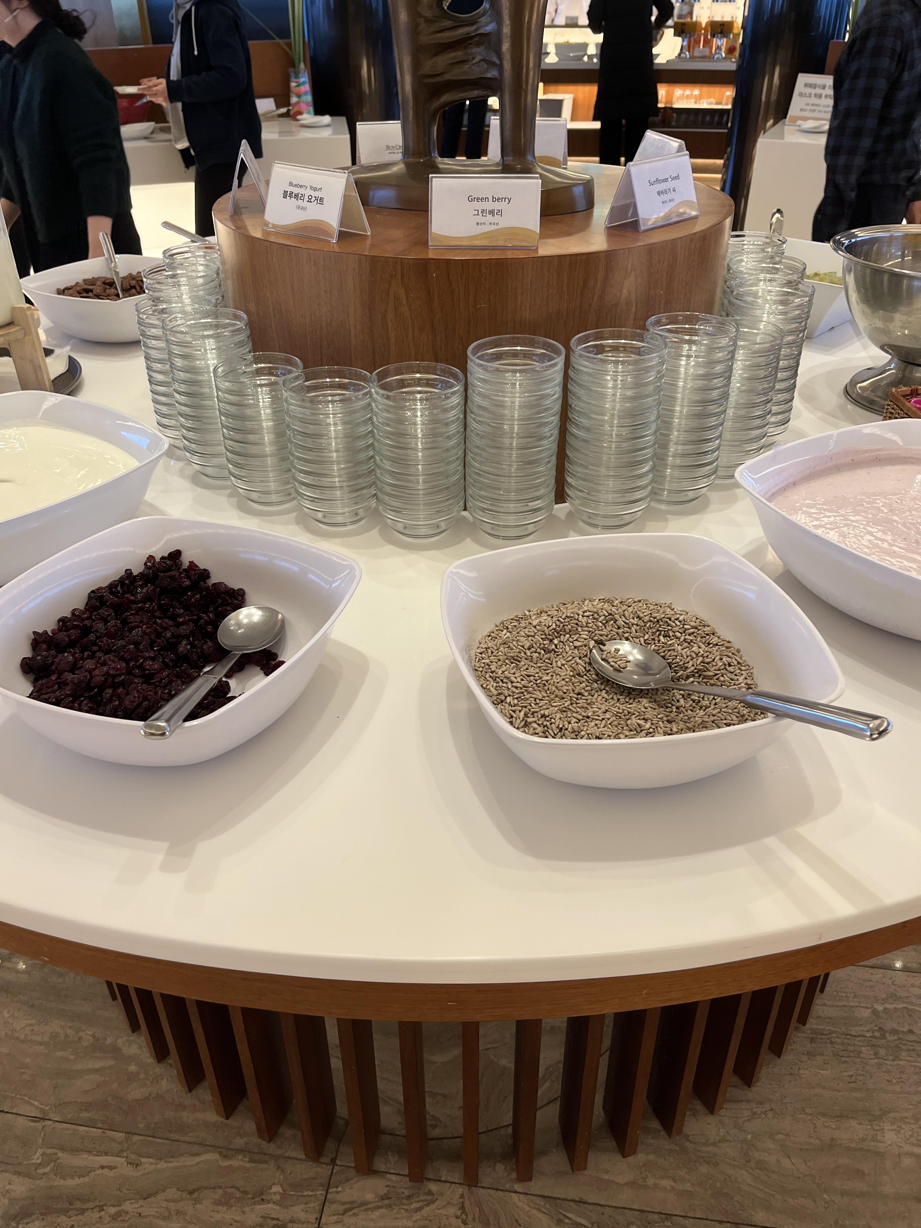 조식은 한식과 다양한 음식들, 디저트까지 있었구요. 대표적인 음식 몇개가 강조되어 팔리는 것 같고, 생각보다 규모가 크진 않았어서 다른 호텔의 조식메뉴들과 비교되는 점이 조금 아쉬웠어요. 그래도 맛은 다 있었고 디저트류도 맛있어서 좋았어요 :)