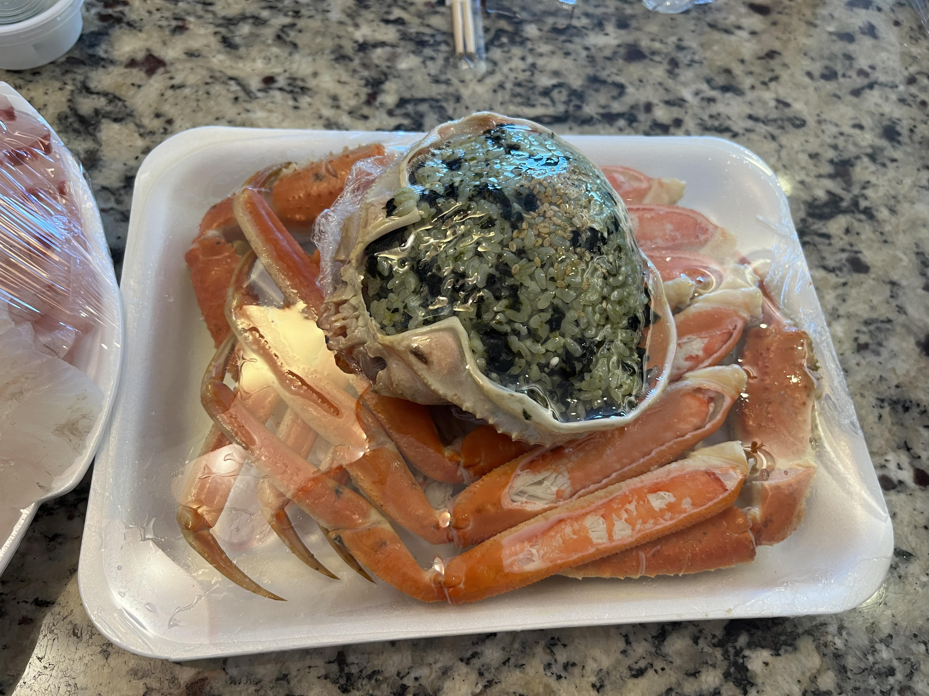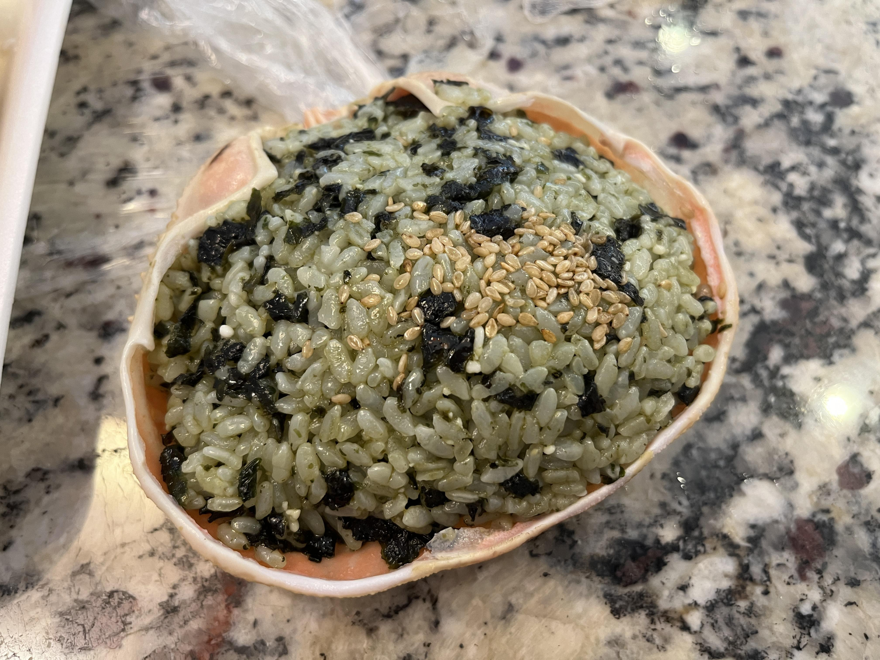 게딱지에 비벼진 밥은 고소하고 게는 살이 오동통하니 다 발라져있어서 금방금방 분리해서 먹기 좋았어요!