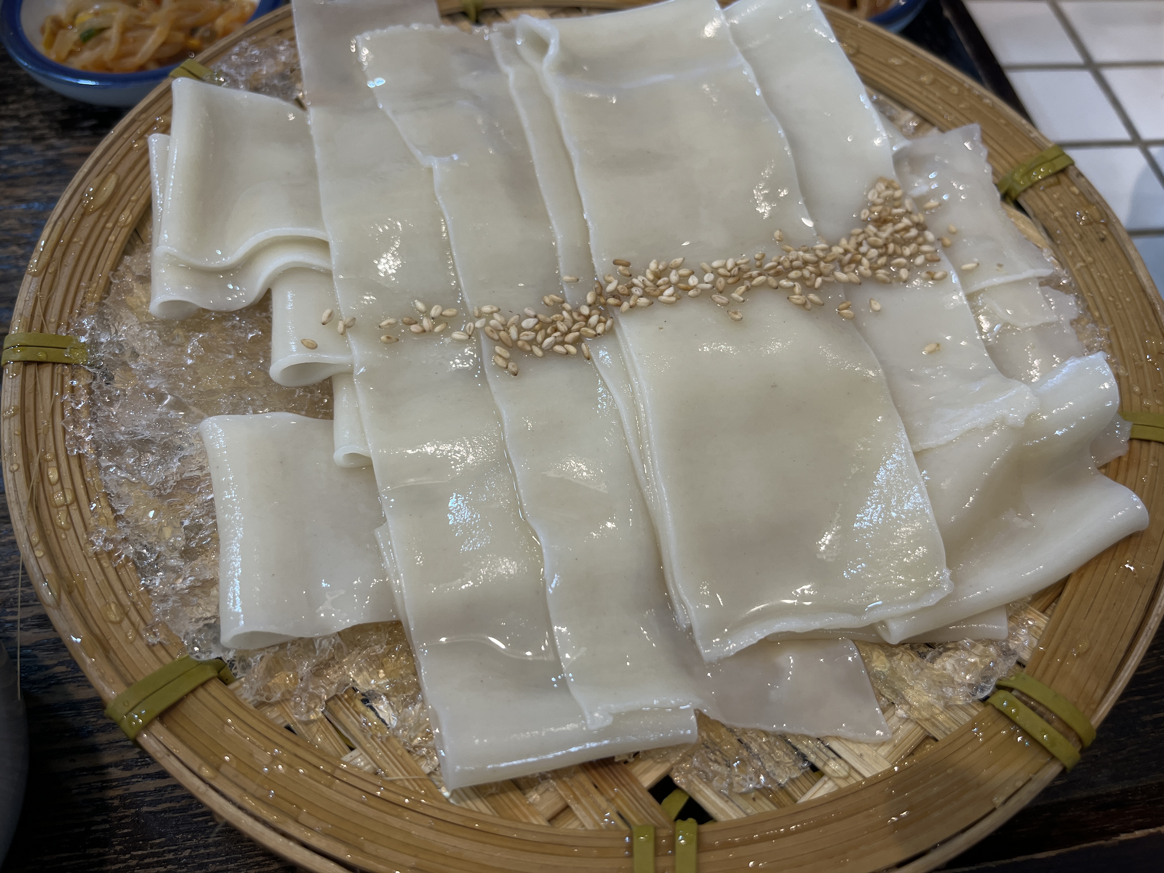 차가운 얼음을 갈아서 그 위에 면을 올려주고, 두가지 소스에 담가서 건져먹는 별미. 사실 이걸 먹으려고 여길 왔다고 봐도 무방할정도로 설레는 메뉴들중에 확실히 시킬려고 찜해둔 메뉴였어요.