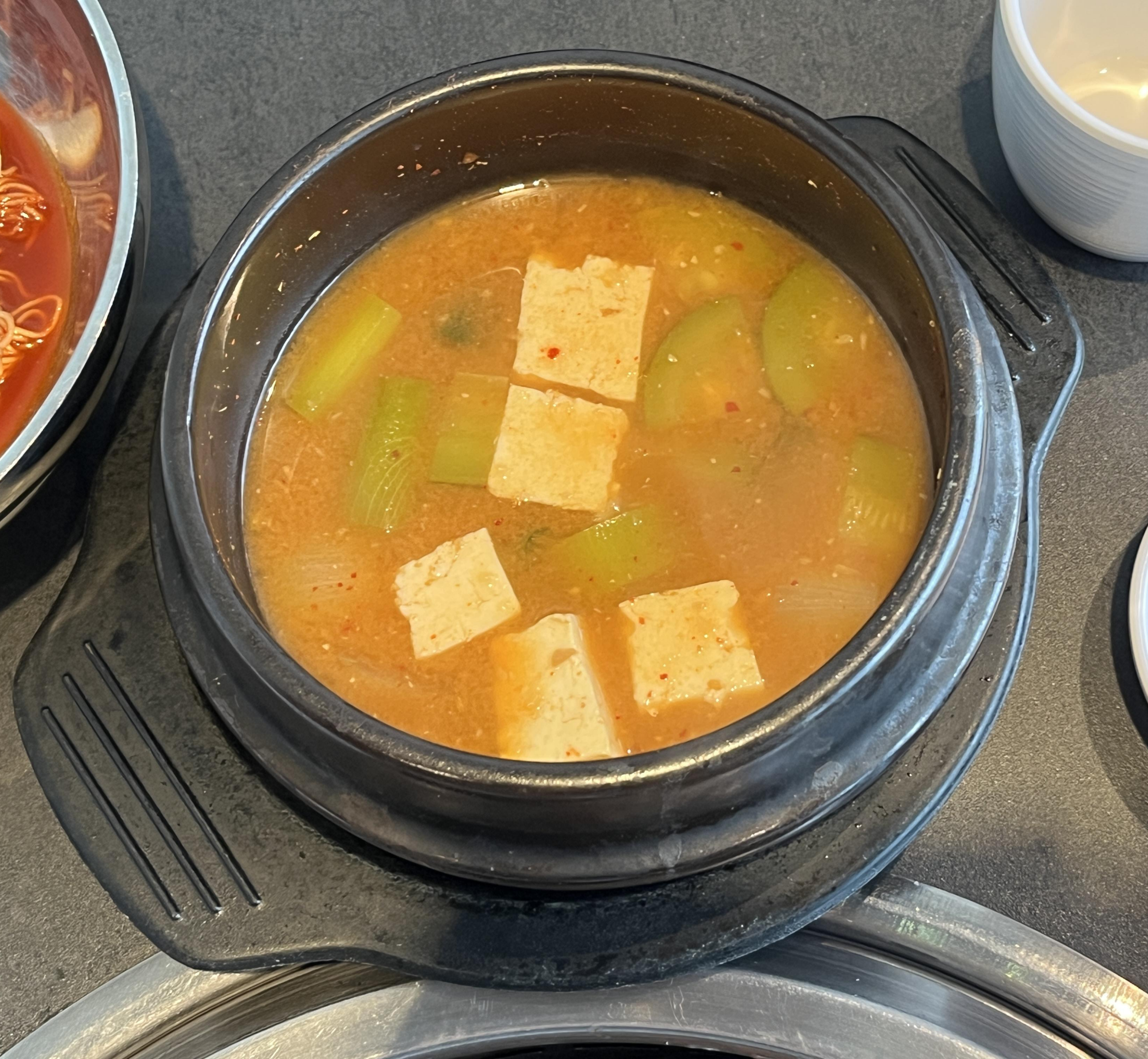 솥밥에는 이렇게 된장찌개가 같이 나오는데 개인적으로 식사류 맛은 쏘쏘했어요! 하지만 비냉은 드셔보시길 추천드려요! 그 얼얼한 맛이 중독성있거든요 ㅎㅎ