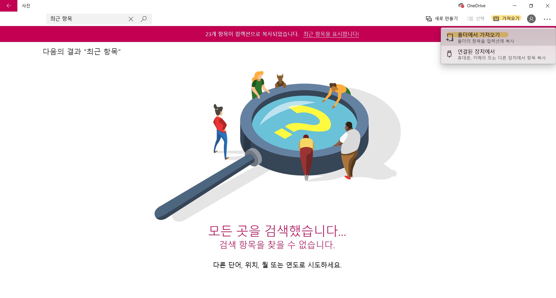 4. 폴더를 선택한 후 '이 폴더에서 항목 가져오기' 클릭