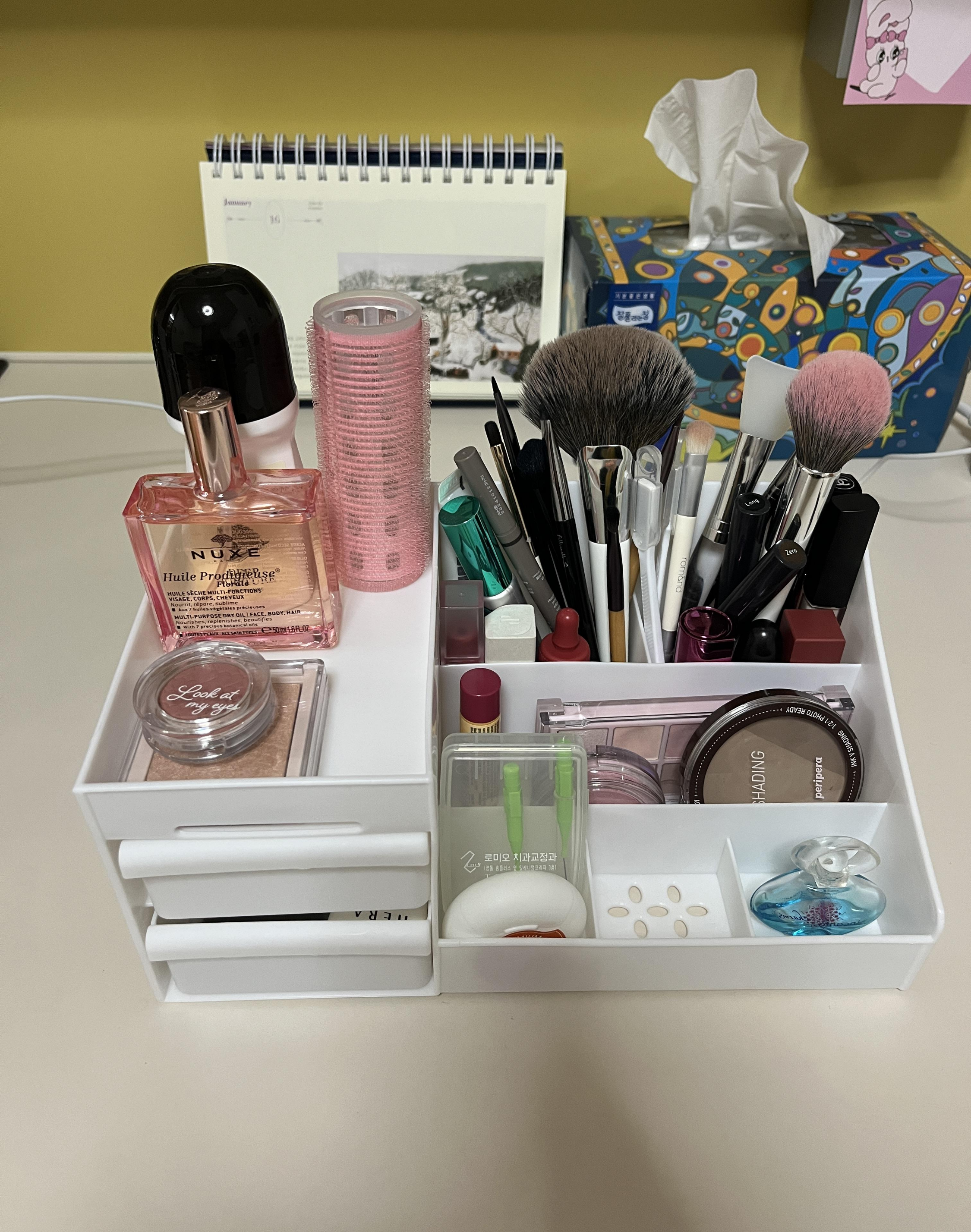책상위에 놓고쓰는 화장품들이 많아서 다 따로따로 올려놓지 말고 정리해보고 싶어서 구매하게된 정리함!