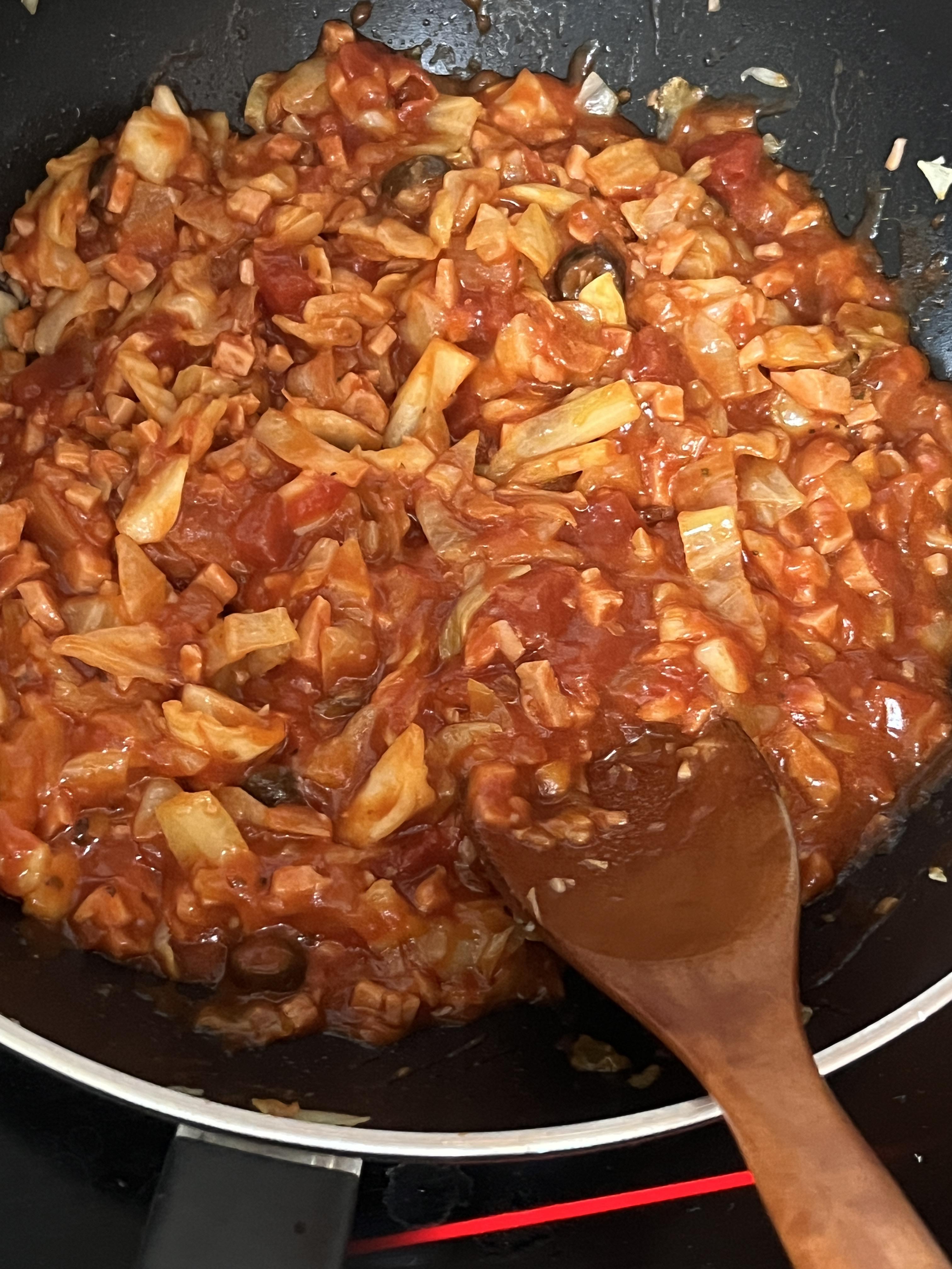 에그인헬 재료대체해서 양배추 스팸 잘게다져서 마늘이랑 훅훅 볶아주고 토마토소스에 케챱한스푼, 계란 넣고 완성했는데 어디서 자꾸 올리브가 씹히는거에요? 올리브까지 있는 토마토소스 처음봤는데, 그냥 토마토소스만 찍어먹어봐도 너무 시큼하거나 새콤하지않고 그냥 딱 적절한 피자 토마토소스 향이나서 정말 맛있었어요!