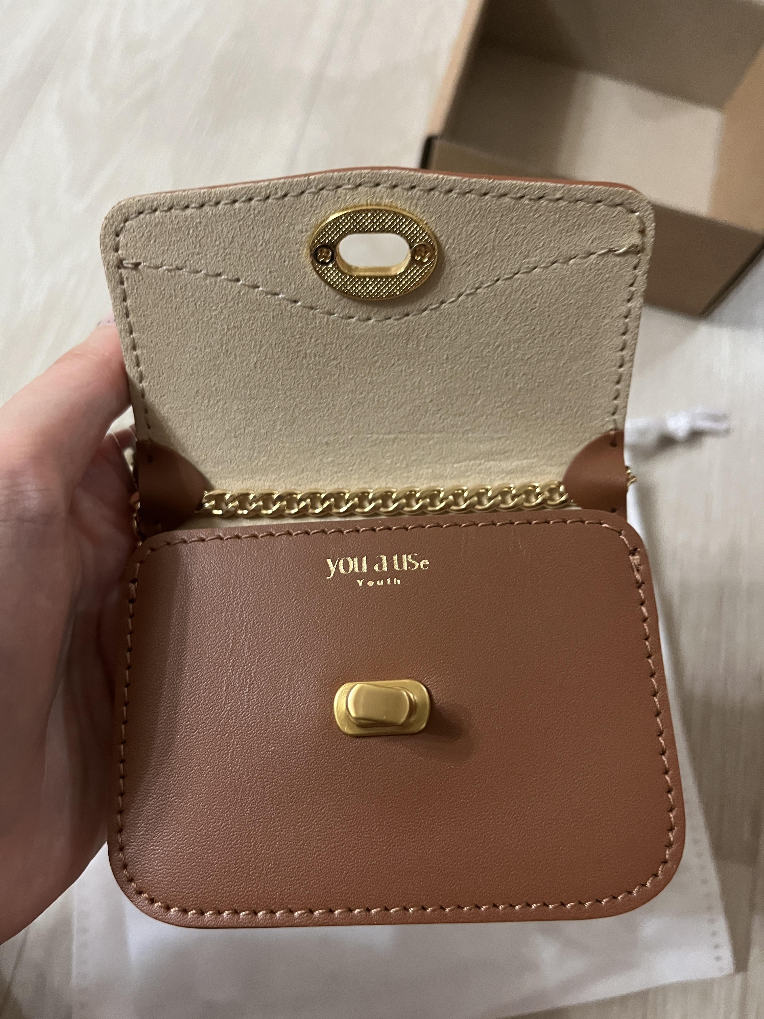 색감은 두번째 사진과 더 비슷하고 카멜색이 딱 맞는 색감이에요! 스티치 포인트와 you a use 로고, 스트랩까지 색감이 통일되어서 더더욱 예뻤어요 :)
