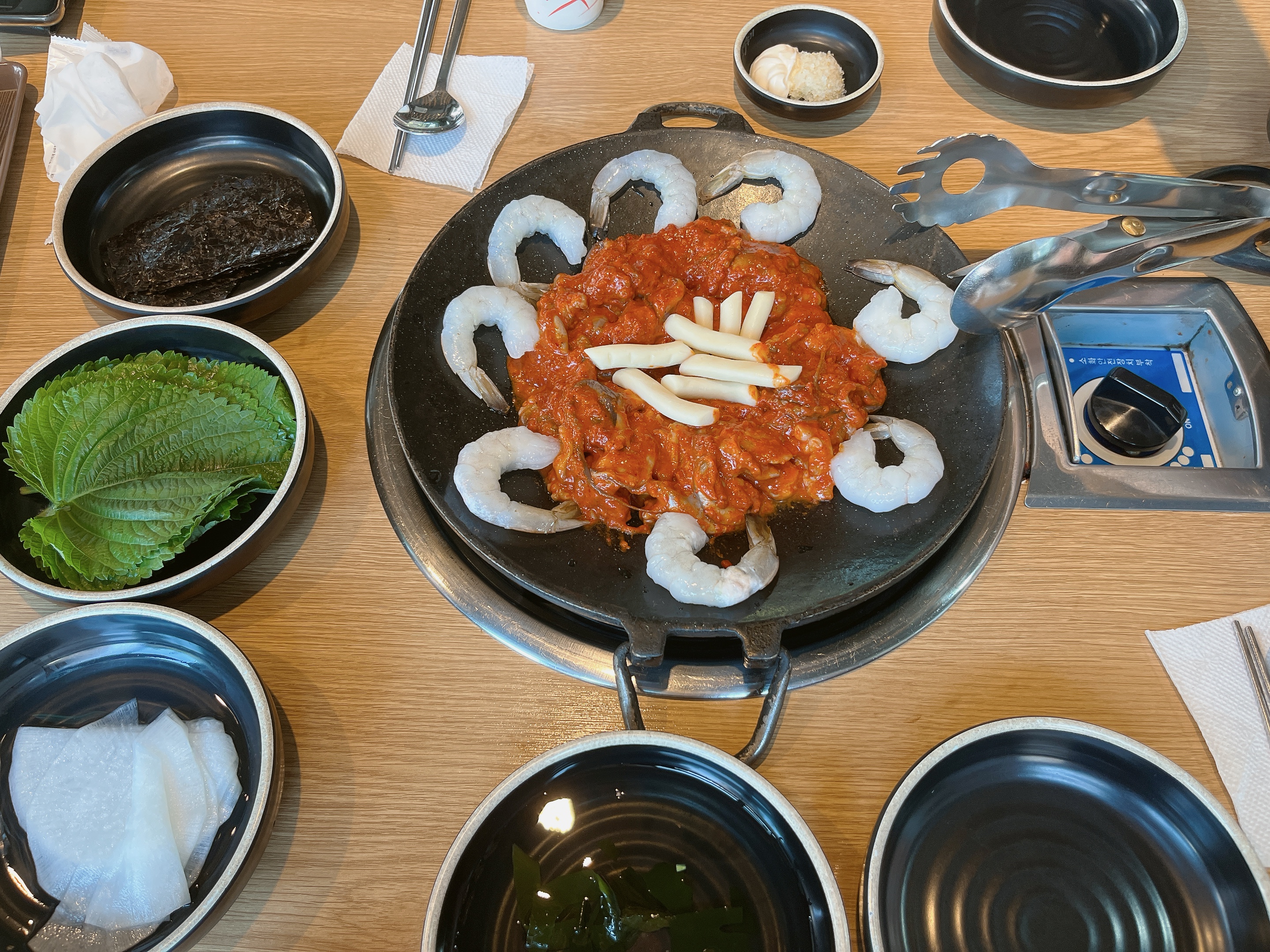 새우쭈꾸미볶음에 들어있는 새우가 굉장히 오동통하고 살이 꽉차있어서 정말 맛있어요! 새우도 같이 쌈을 싸서 먹으면 너무나 맛있다는거..👍