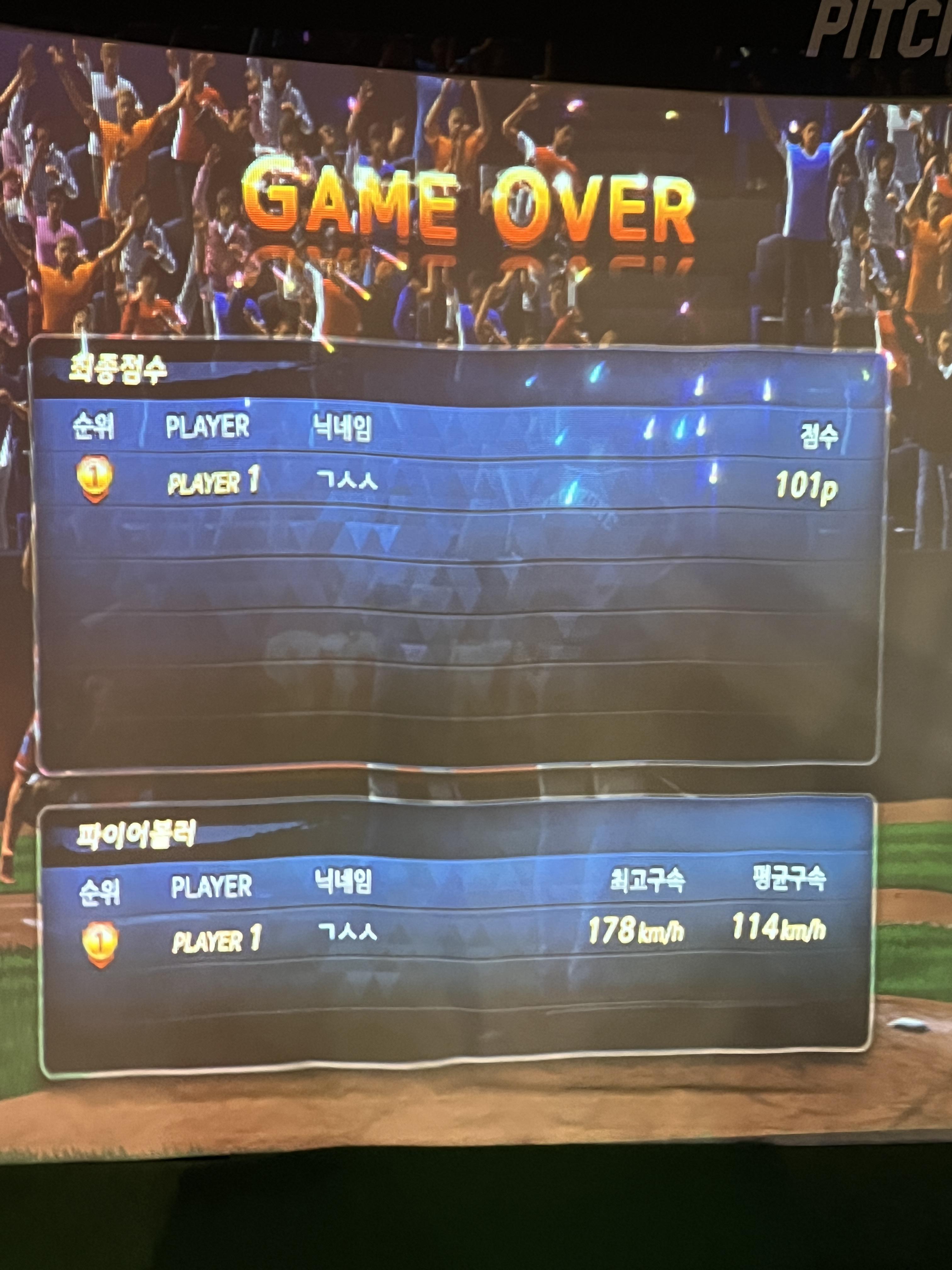 저의 최고구속은 46km인데 남자친구는 계속 100이 넘어서 신기했던..! 마지막은 178km 나왔는데 🤣