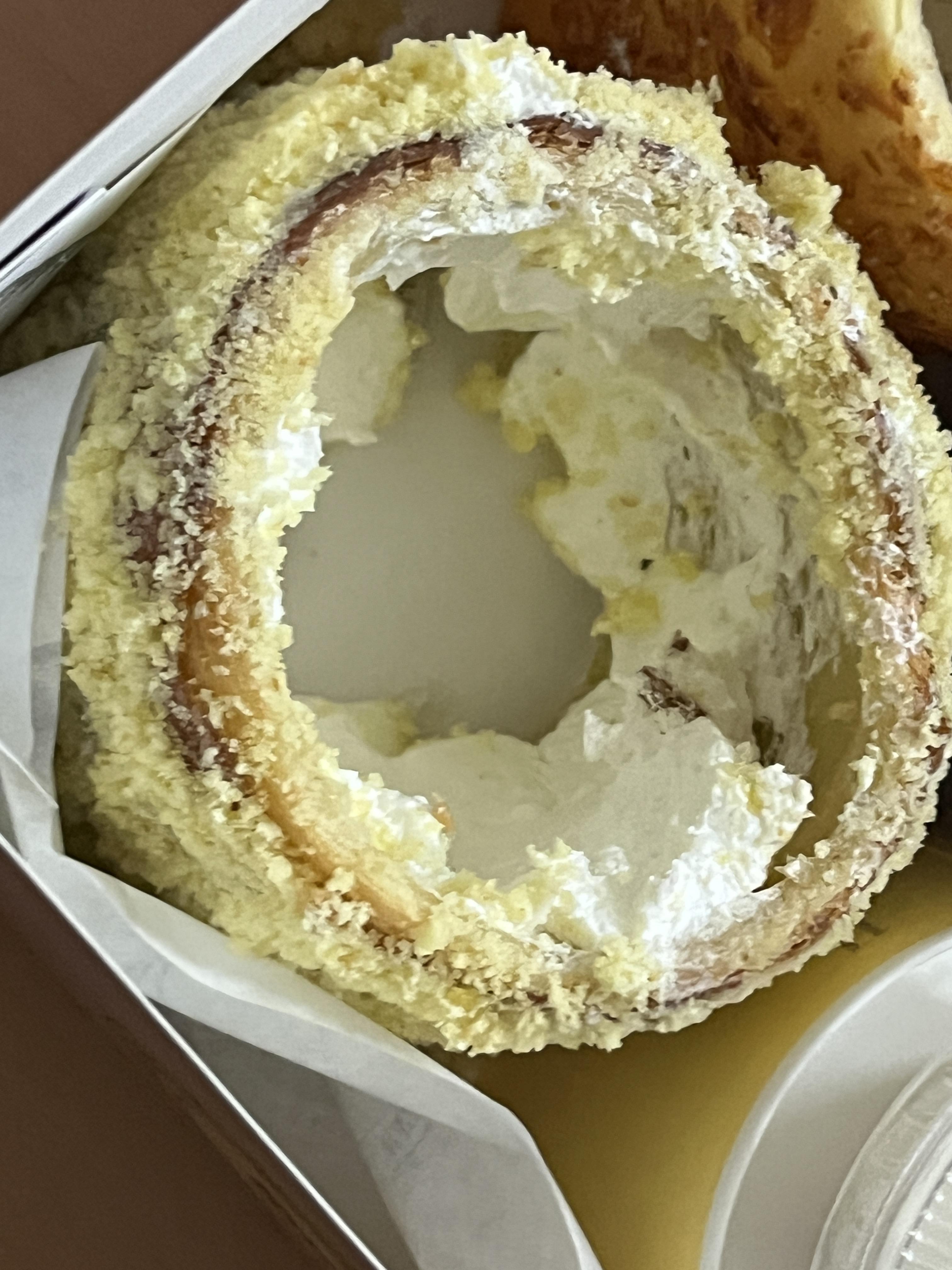 겉에는 새콤달콤한 맛이, 안에는 깊은 누텔라 향이 어우러지는 맛이었는데 맛자체가 무게감이 있을 수 밖에 없어서 상큼하게 먹기에는 좀 아쉬웠던 메뉴였어요.