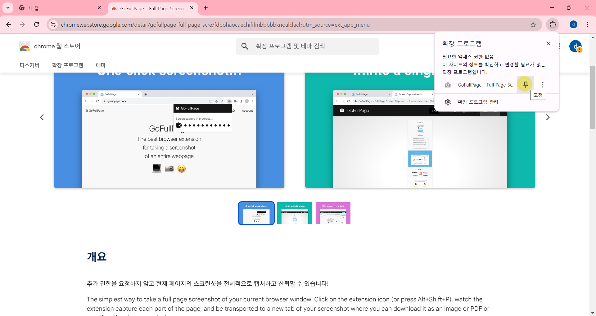 확장프로그램 탭 바에 고정시켜놓는 방법