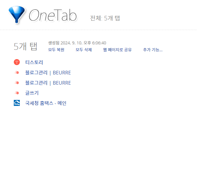 이런식으로 켜지기때문에 잠시 절전하고싶을때 탭으로 묶어두거나, 지금은 안쓰는데 이따써야할 것들 모아두기 편해요 :)