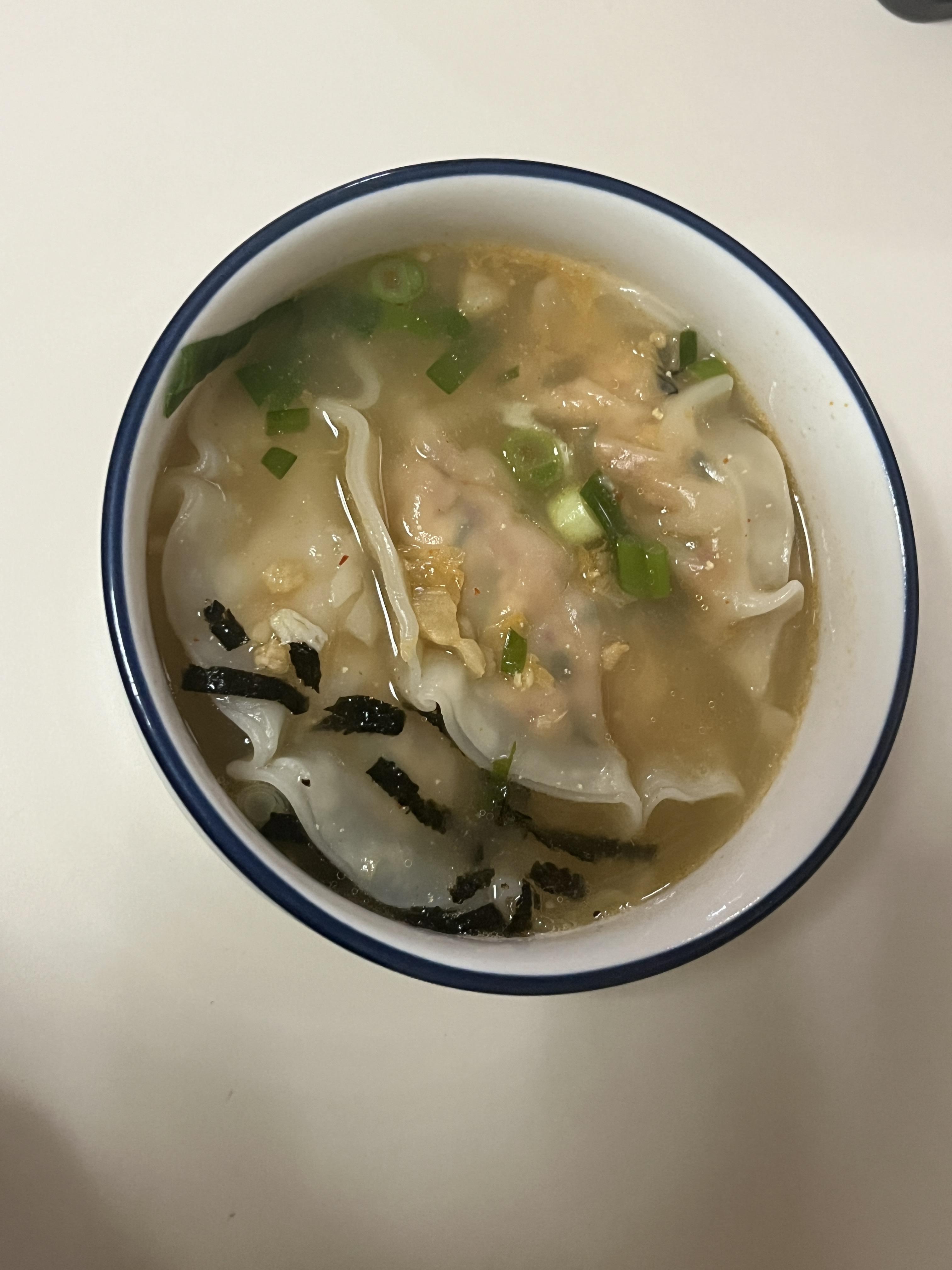 아빠가 만든 만두 넣은 만두국 먹는 중