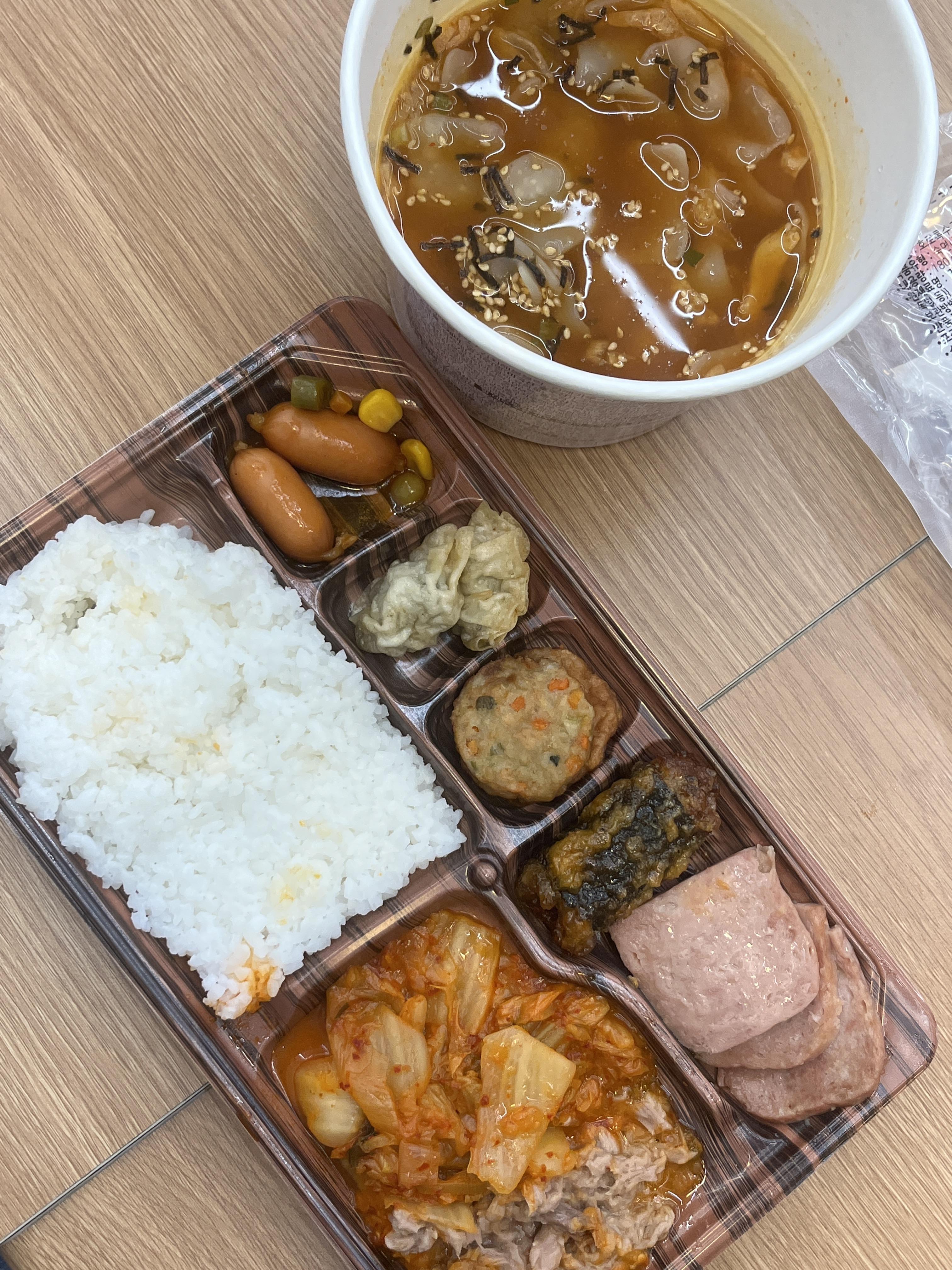 원래 끓여먹는 한강라면 먹을생각으로 왔는데 기계고장났다고해서 고구마 구워달라고 주문해놓고 저녁먹기, 도시락진짜 마싯다 ☺️