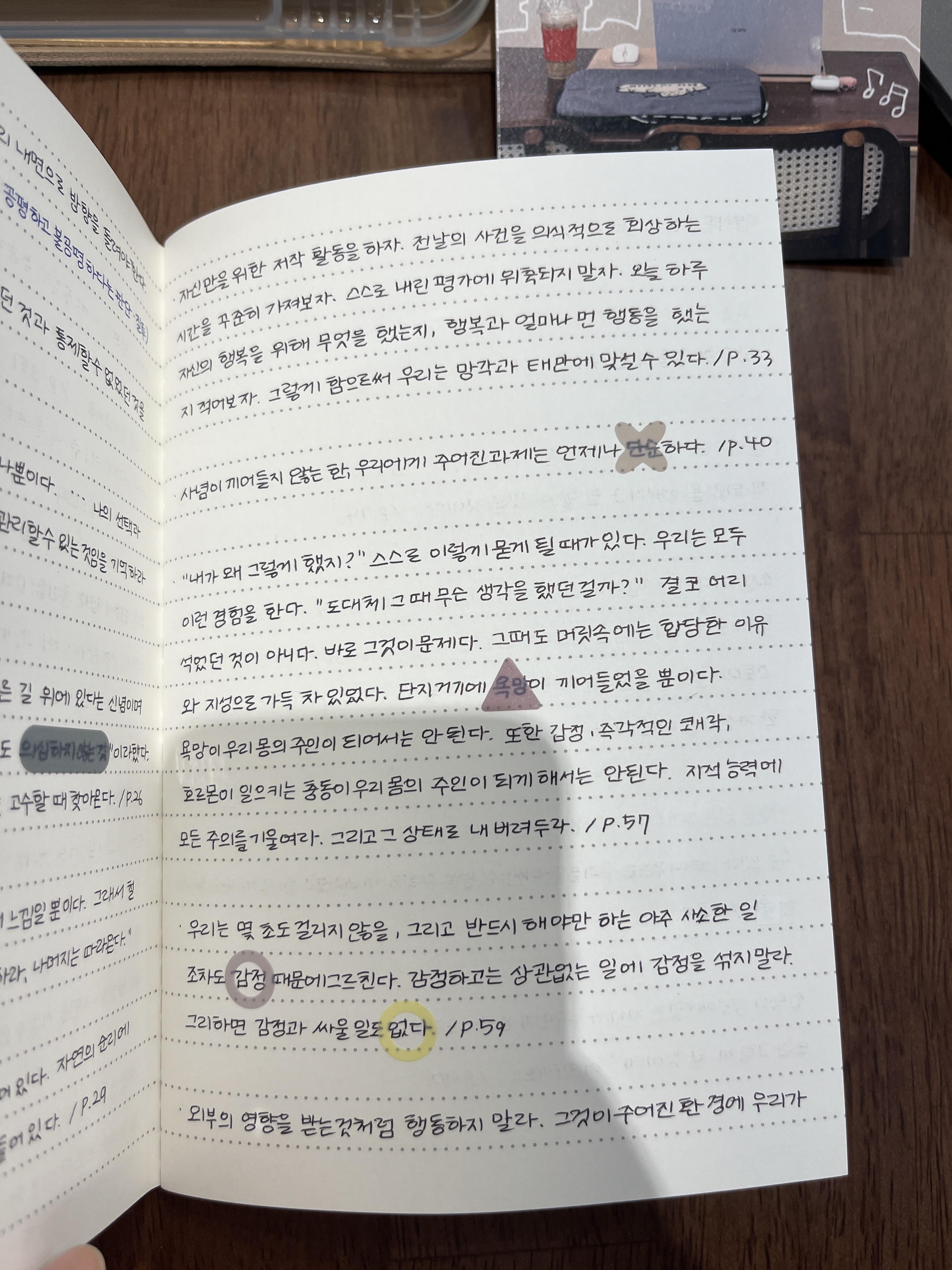 오늘부터 실천해보려고 내가 적어둔 문장에서 생각, 성찰에 대해 정리해봤다.