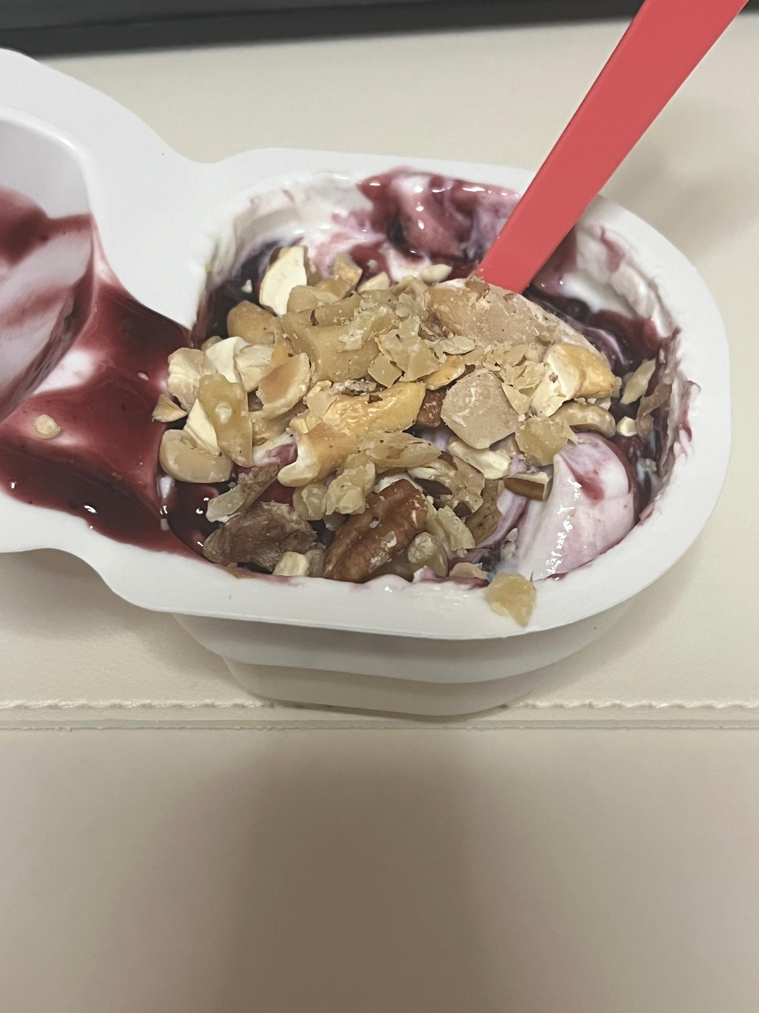 아침 애매해서 그릭요거트 풀무원꺼 여기에다가 견과류 뿌셔서 좀 넣고 먹음 ㅎㅎ 이렇게먹으면 든든하고 건강한느낌이라 좋다.