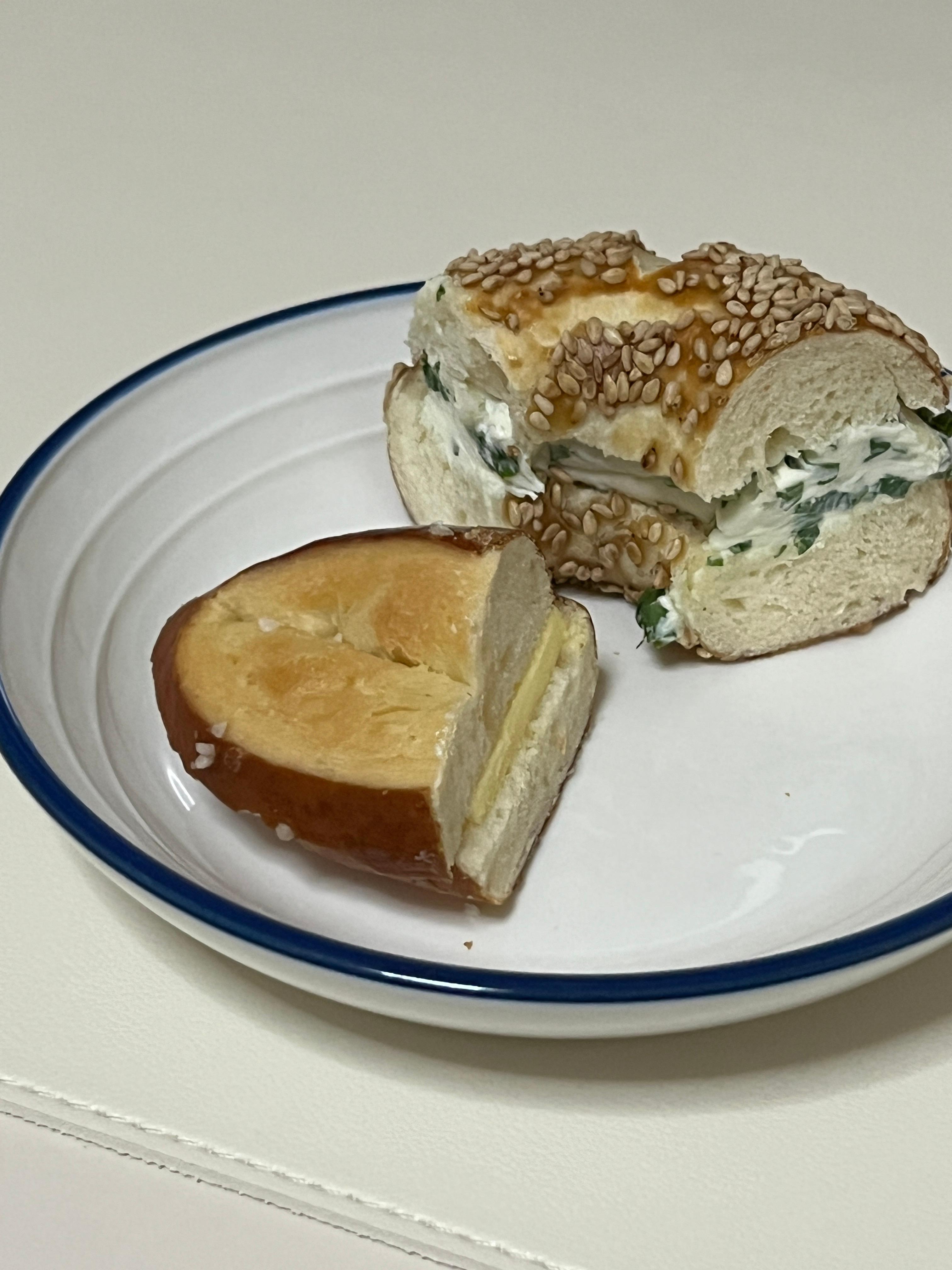그래서 구매한 프레첼버터빵과 크림치즈대파빵