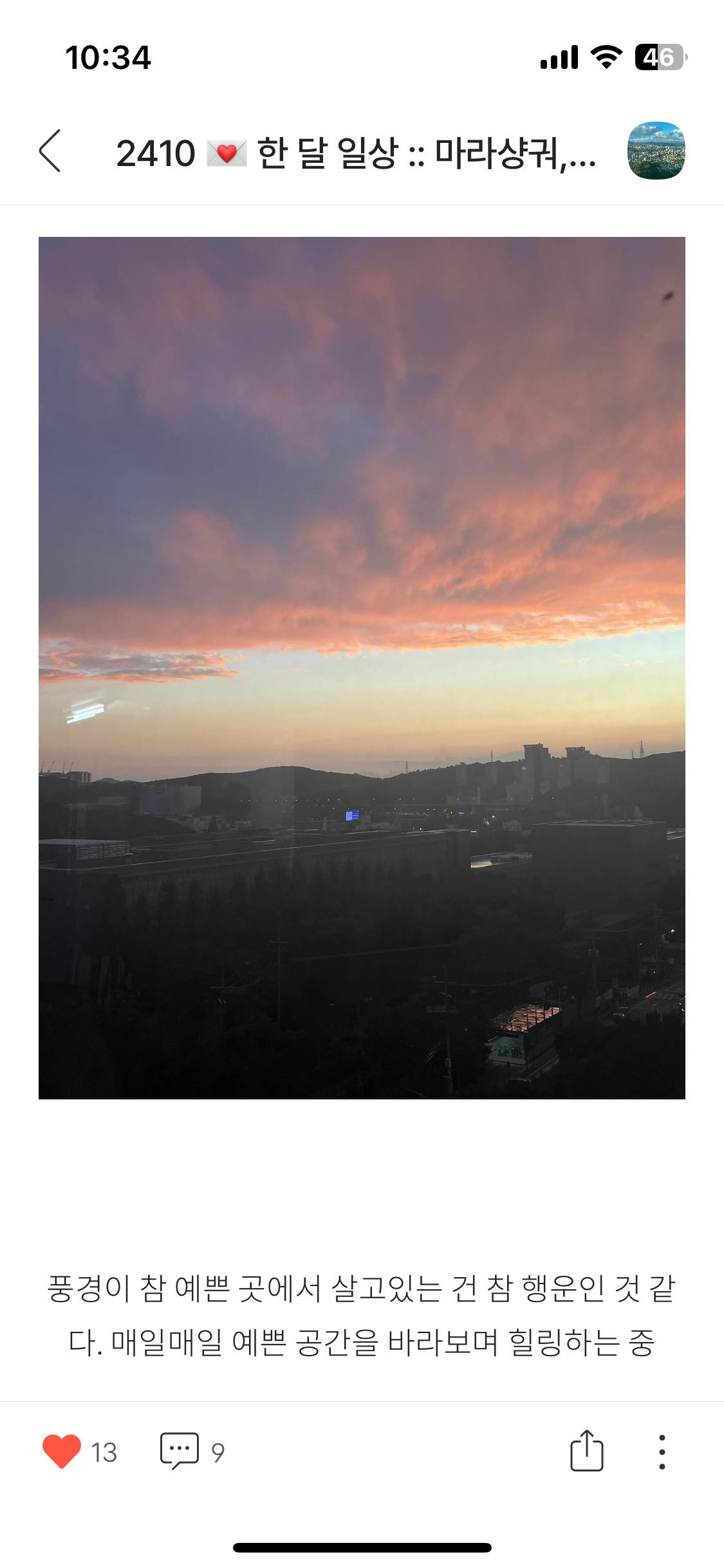 지금 집에 풍경이 너무너무 예뻐서 자연으로 행복감을 잔뜩 충전하며 살아왔다,