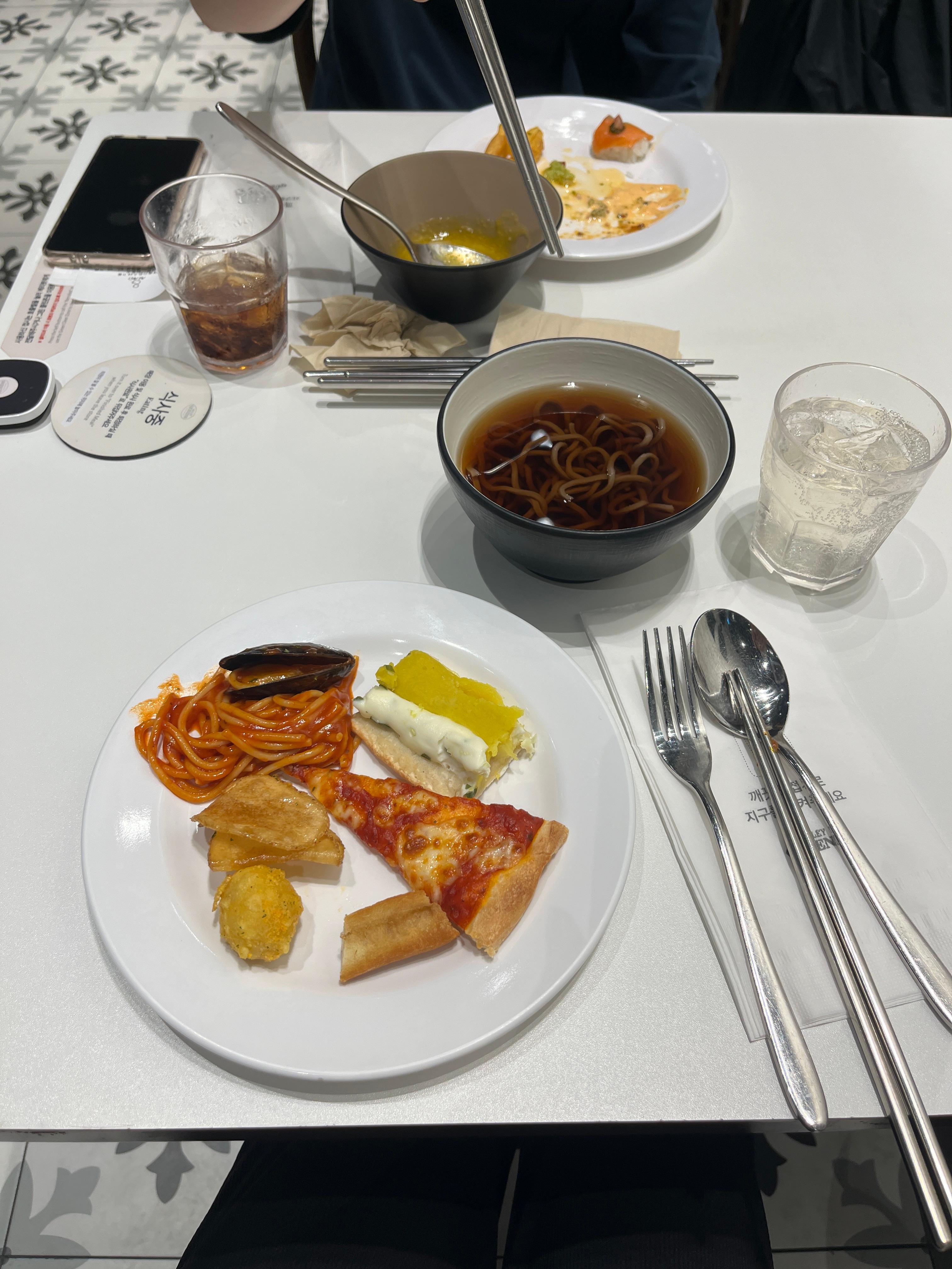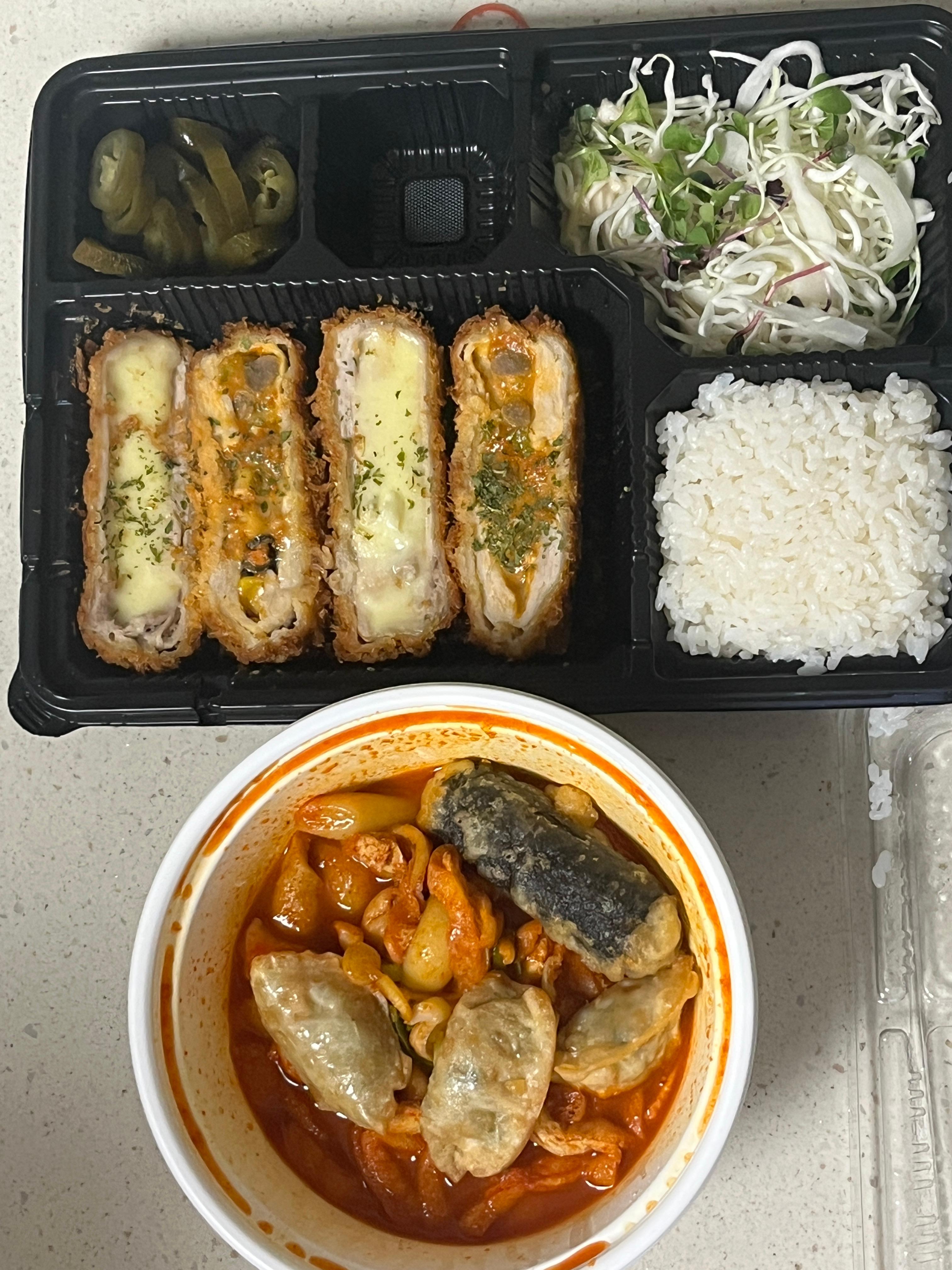 그리고 도전해본 피자돈까스는 그냥 그랬는데, 떡볶이랑 치즈돈까스 너뮤 맛있는 조합이라 행복했다...