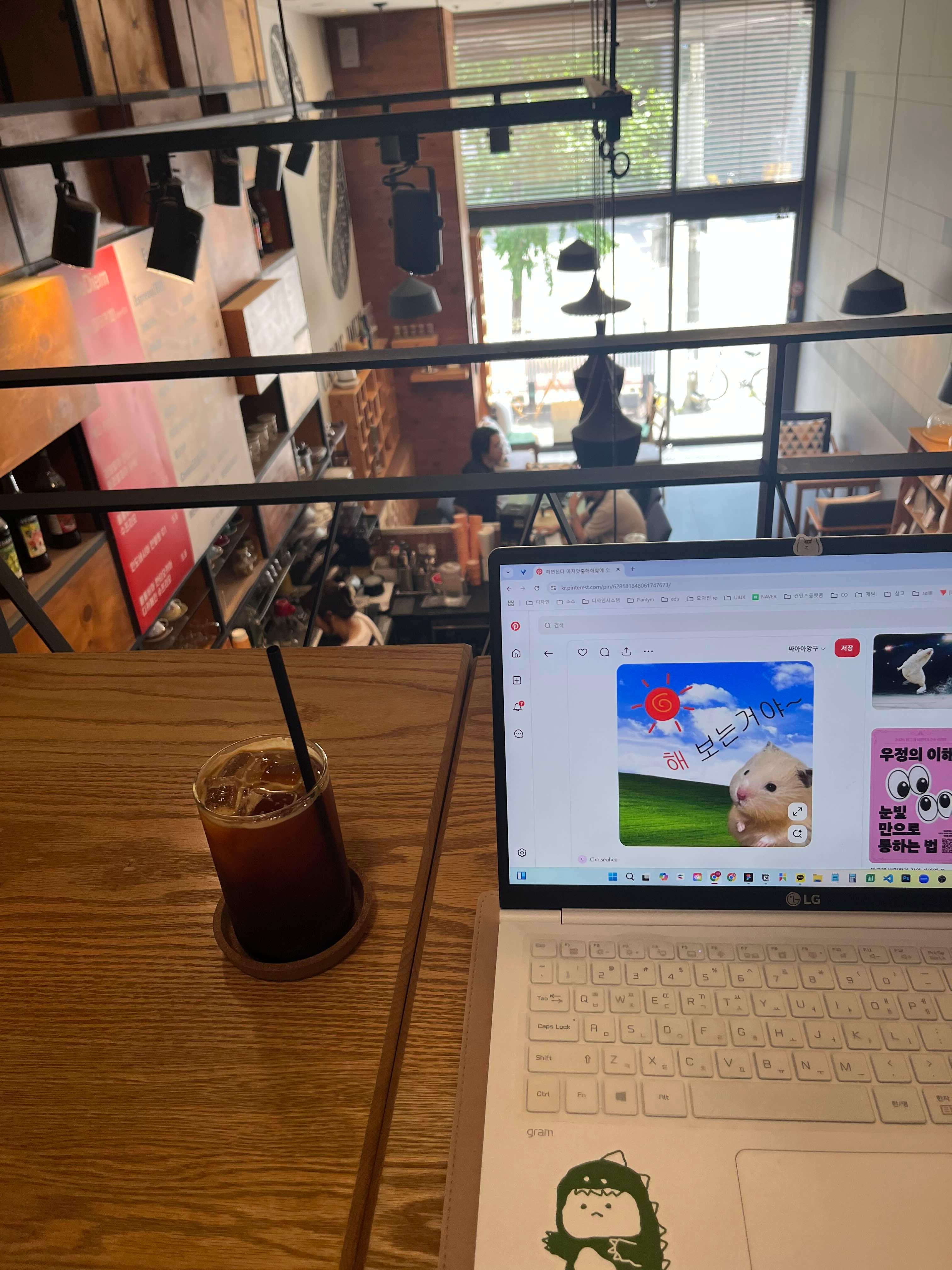카페에서 카페인 수혈과 맛있는 라떼맛도 음미해주고요 -