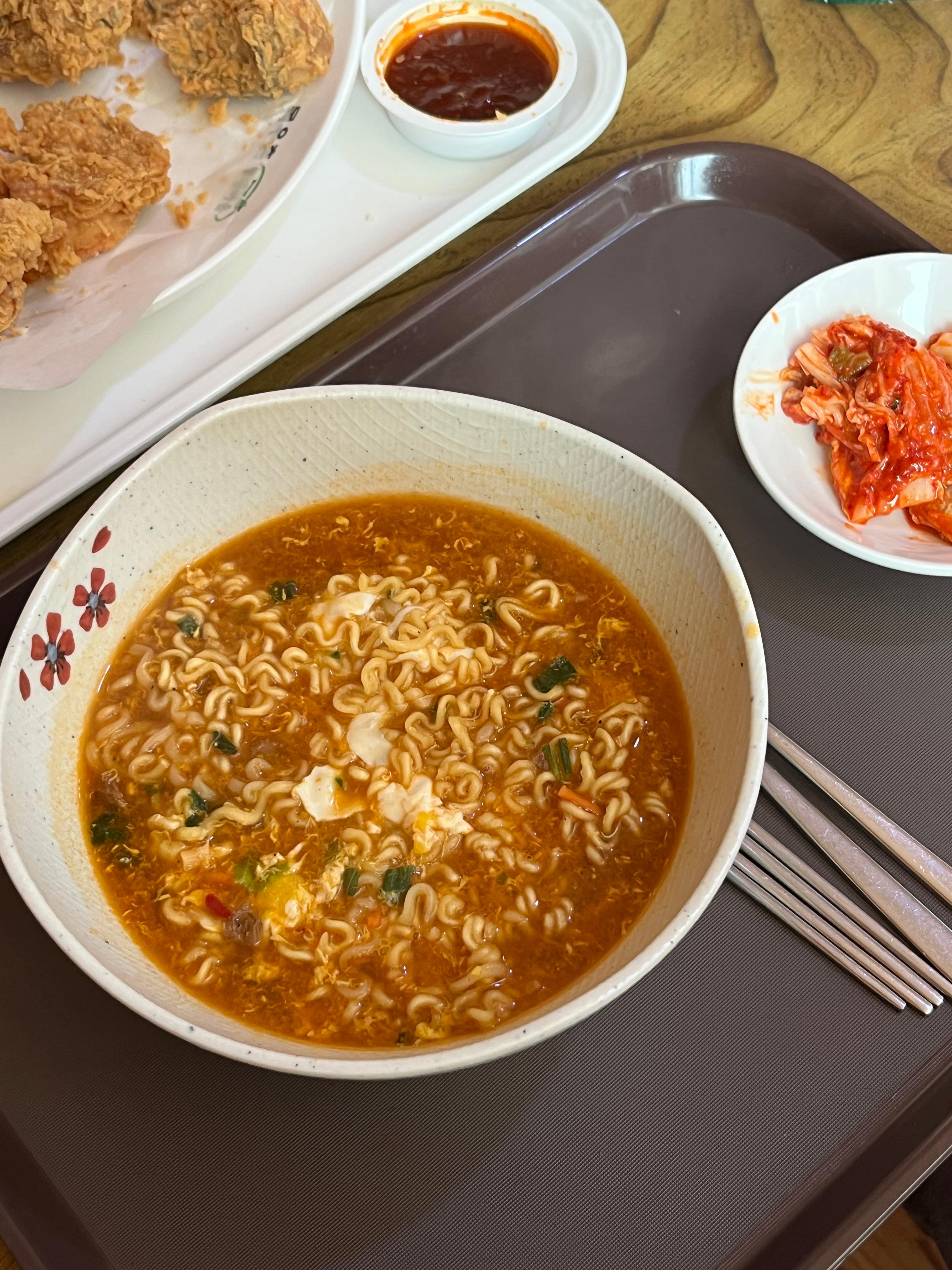 치킨이랑 라면 같이드세요.. 네네