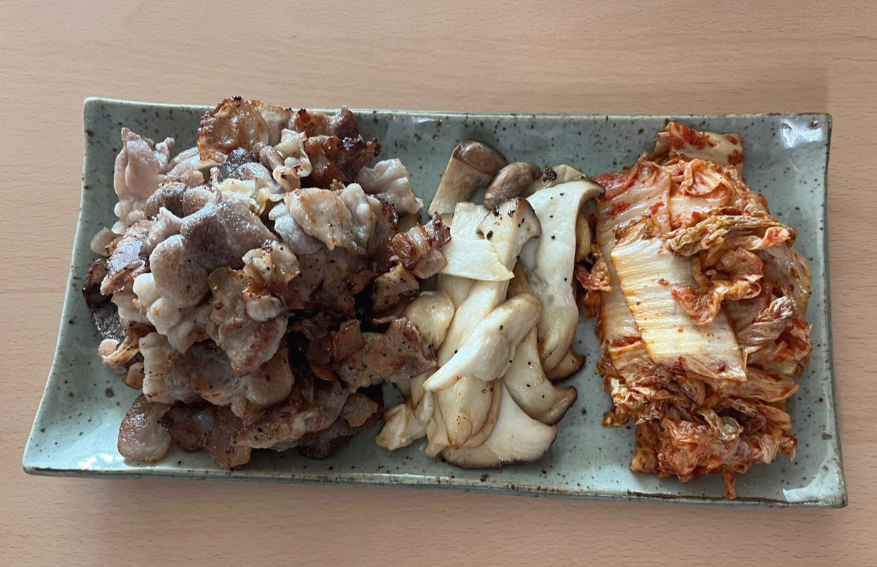 최근에 홈플러스에서 대패삼겹살 싸게 사서 구워먹었는데 김치구워서 같이 먹으니 너무 맛있었어요..!